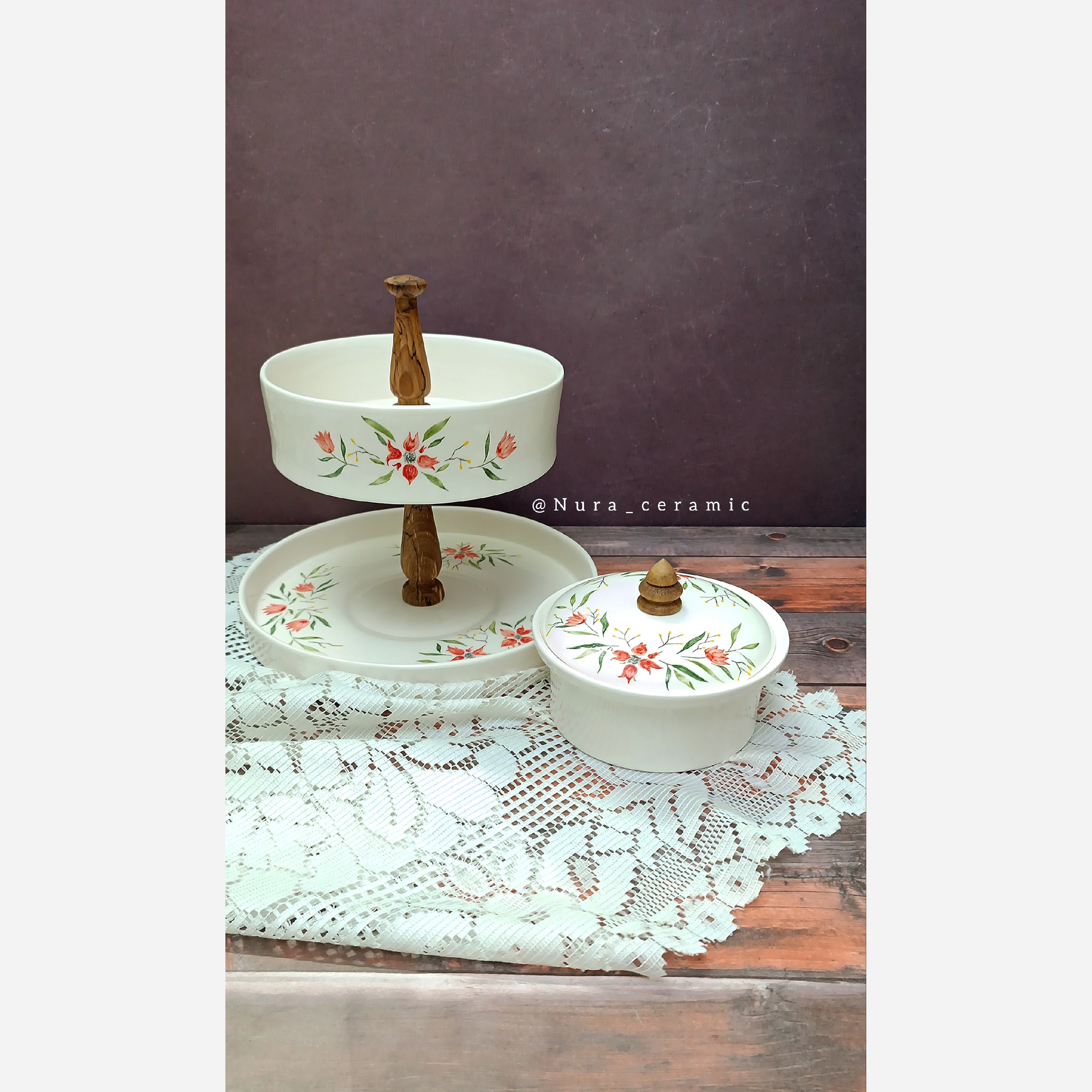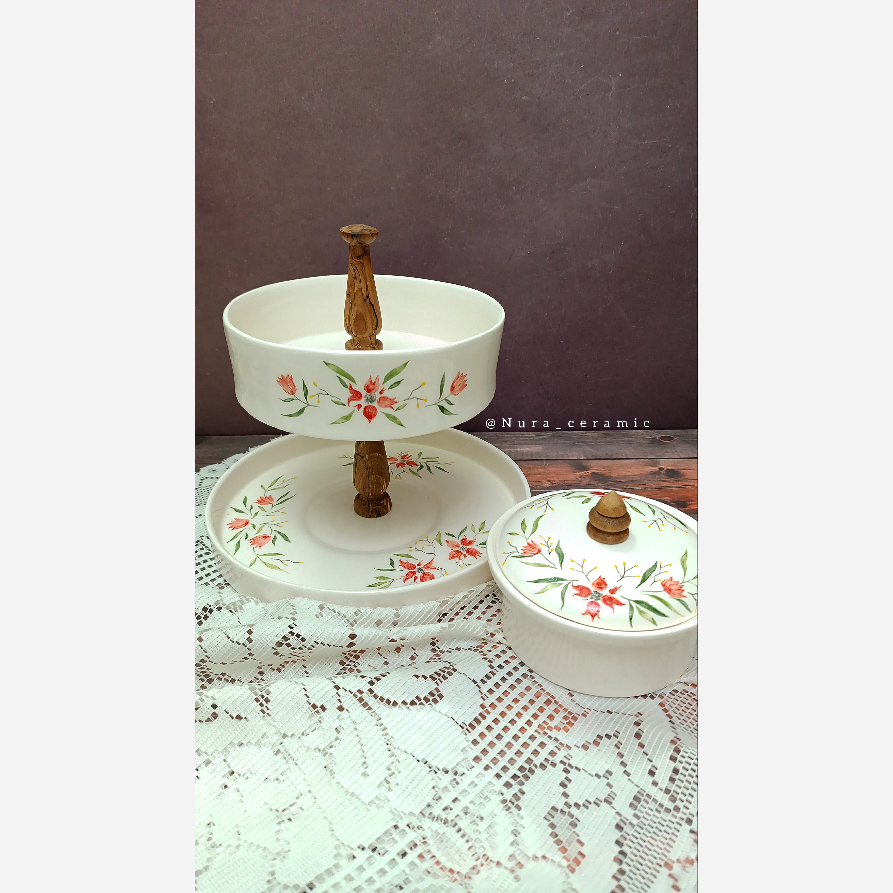 شیرینی خوری دو طبقه و شکلات خوری سرامیکی کاملاً مصرفی کاملاً دست ساز قابل شستشو با انواع شوینده نقاشی زیرلعابی پخت شده با دمای بالای 1089