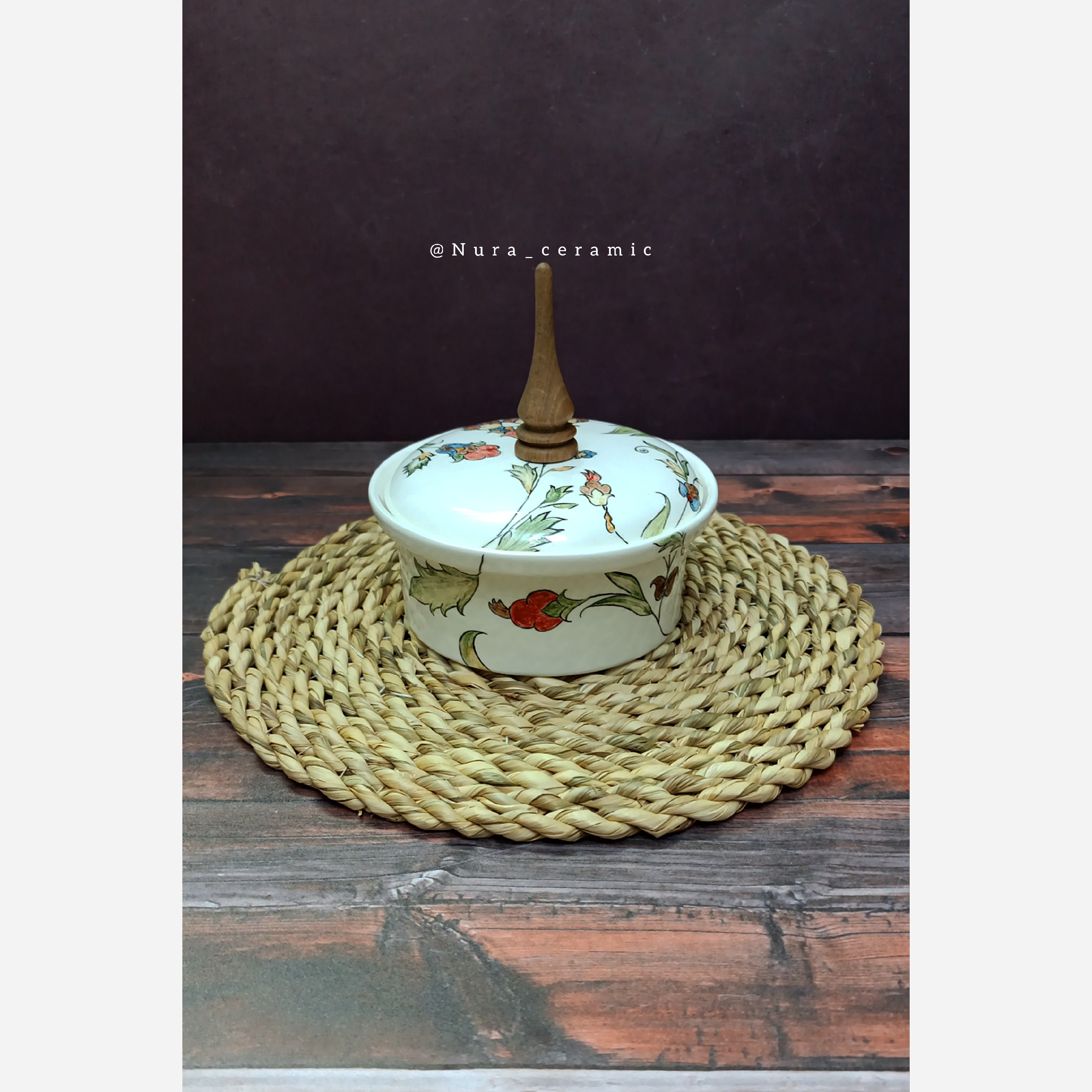 شکلات خوری سرامیکی گل سنتی دسته چوبی مبلمونسرا مدل 295056
