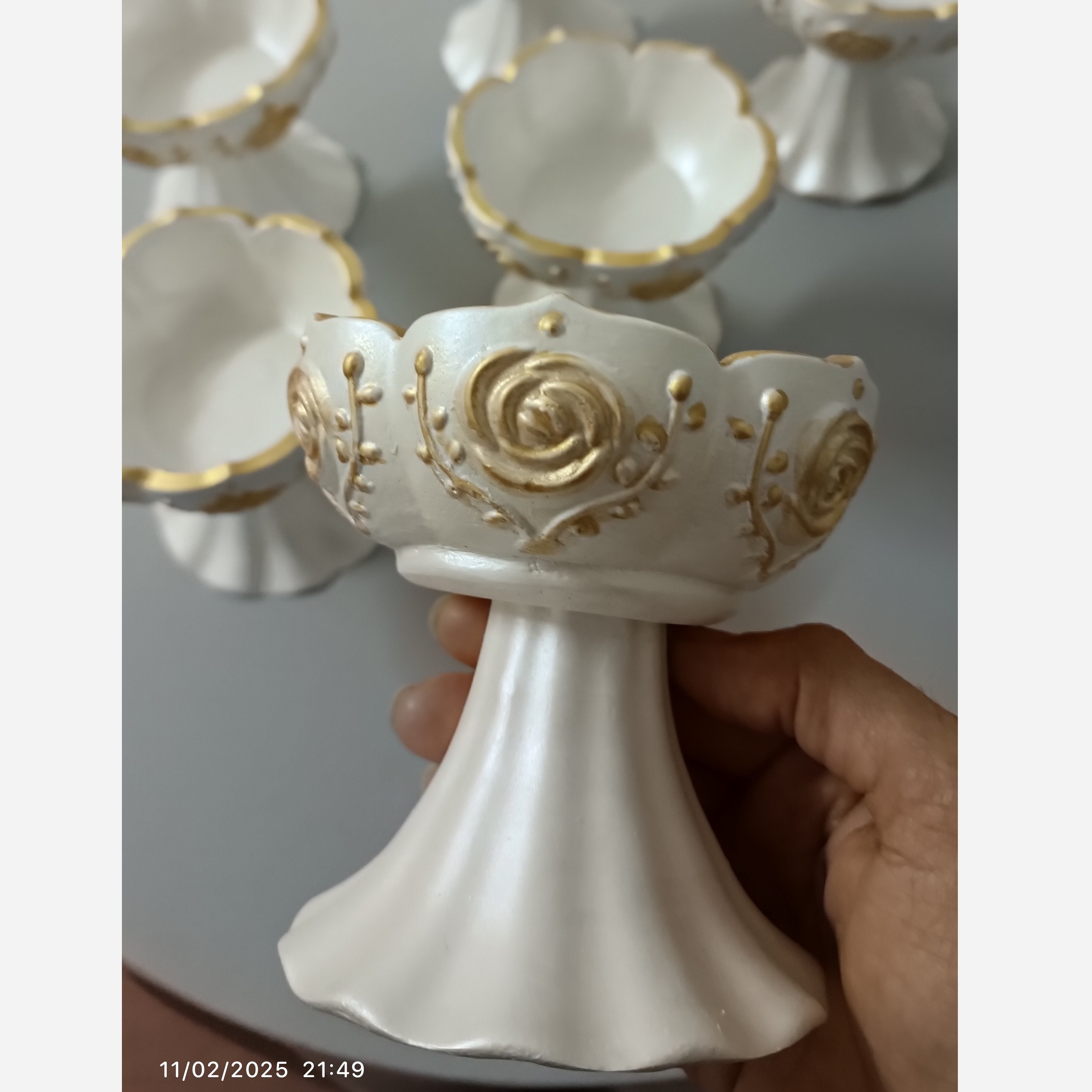 آجیل خوری پایه دار سفید صدفی طلایی مبلمونسرا مدل 265117