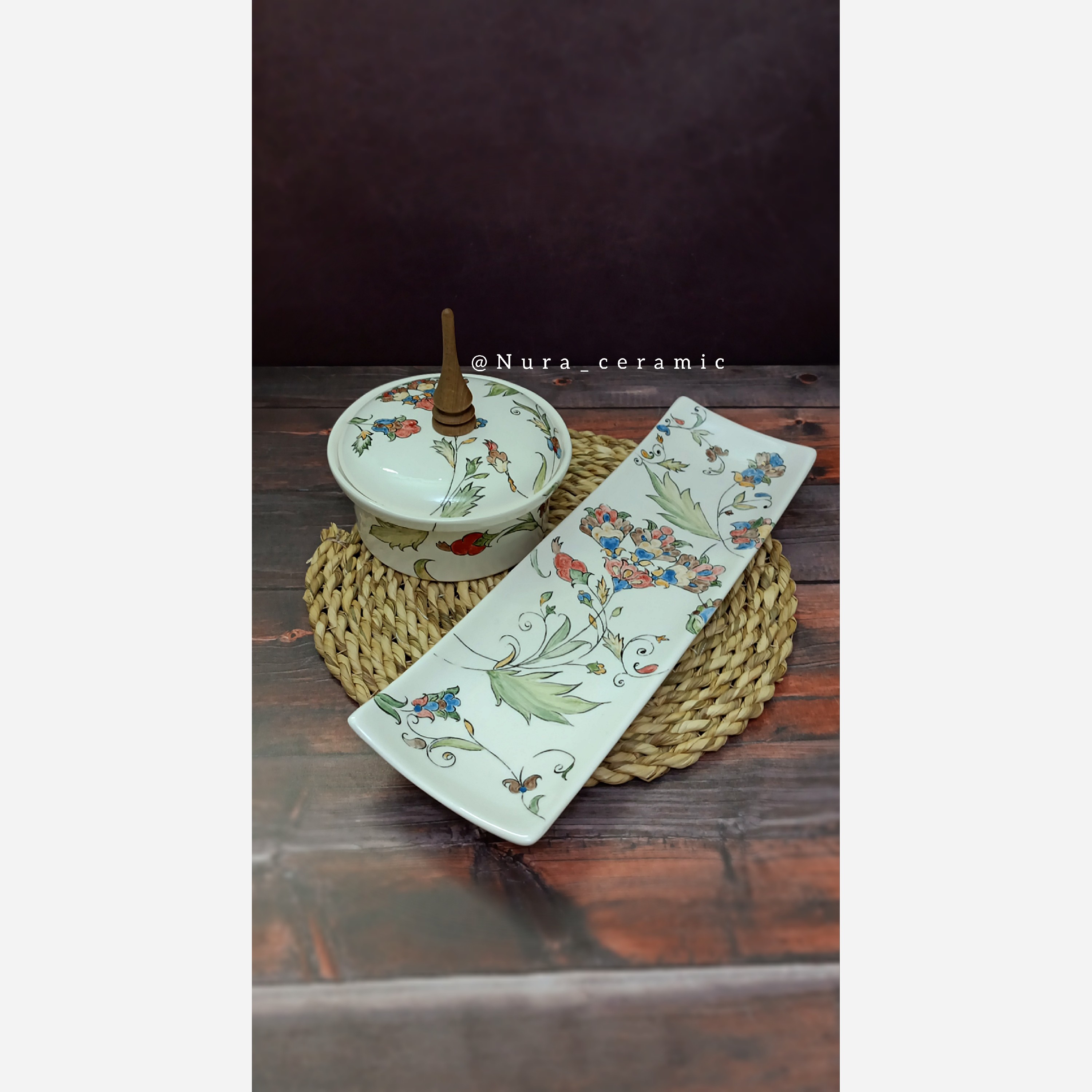 رولت خوری و شکلات خوری سرامیکی گل سنتی دسته چوبی مبلمونسرا مدل 279499