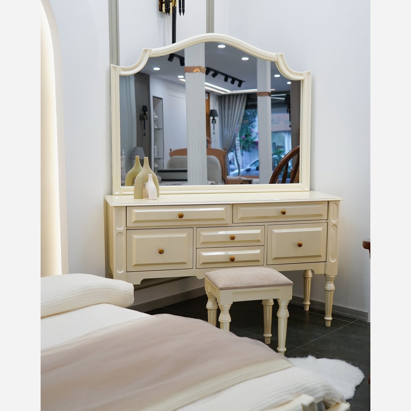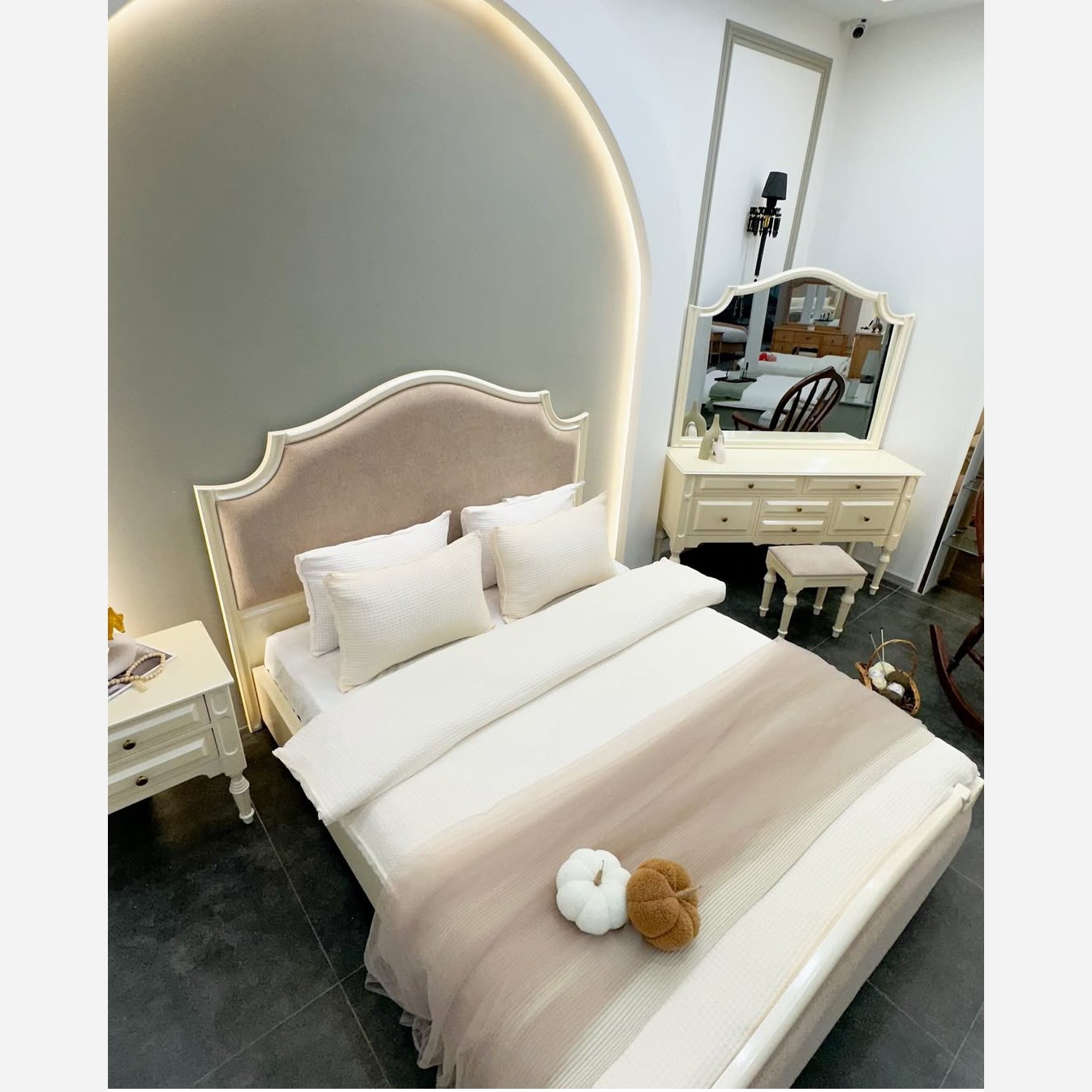 تخت خواب الیزا سرویس کامل جنس تمام ام دی اف شامل کلگی تخت بالا و پایین دو عدد پاتختی میزارایش و صندلی هزینه فایل و کفی تخت جدا می باشد ارسال به سراسر کشور بصورت