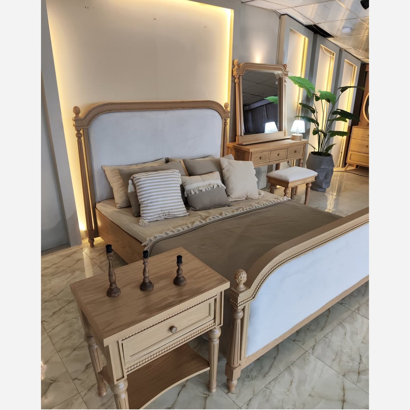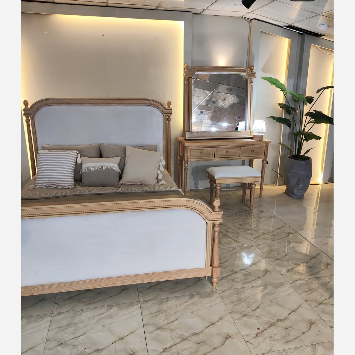 تختخواب دونفره سروینا جنس ام دی اف فوق العاده لوکس و خاص پسند شامل تخت ودوعدد پاتختی و میز ارایش و صندلی هزینه ارسال بعهده مشتری محترم و بصورت می باشد.