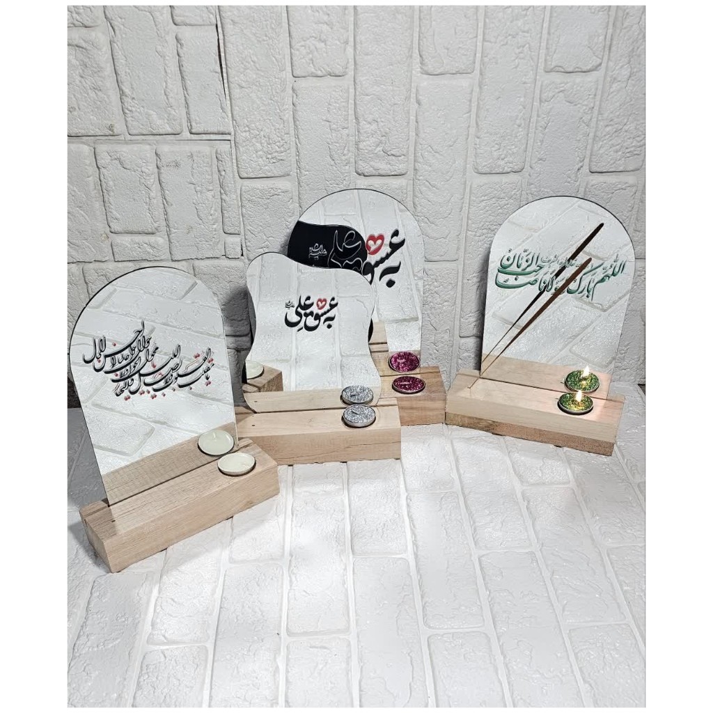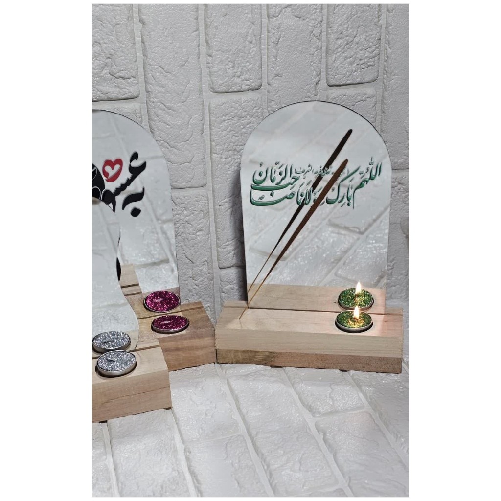 آینه طرح دفرمه و محراب 🔷 سایز 20سانت 🔶به همراه شمع والمر رنگی 🔷به همراه جاعودی ✅یک کار جدید و بسیار با کیفیت و زیبا😍😍 ✅به همراه نوشته های مذهبی