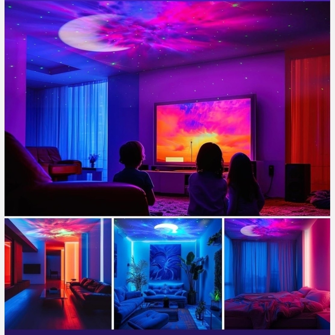 این یک چراغ خ آب معمولی نیست، یک پرژکتور فضایی هست که لیزر ماه و ستاره و سحابی ها را در بر دارد،. و در ضمن یک اسپیکر هم هست، توی شب فضایی آرامش بخش را به همراه ماه و ستاره ها به اتاق فرزندت اضافه کن. یک وسیله ی بسیار زیبا و جالب برای بچه هایی که میترسند تنهایی بخوابند.
