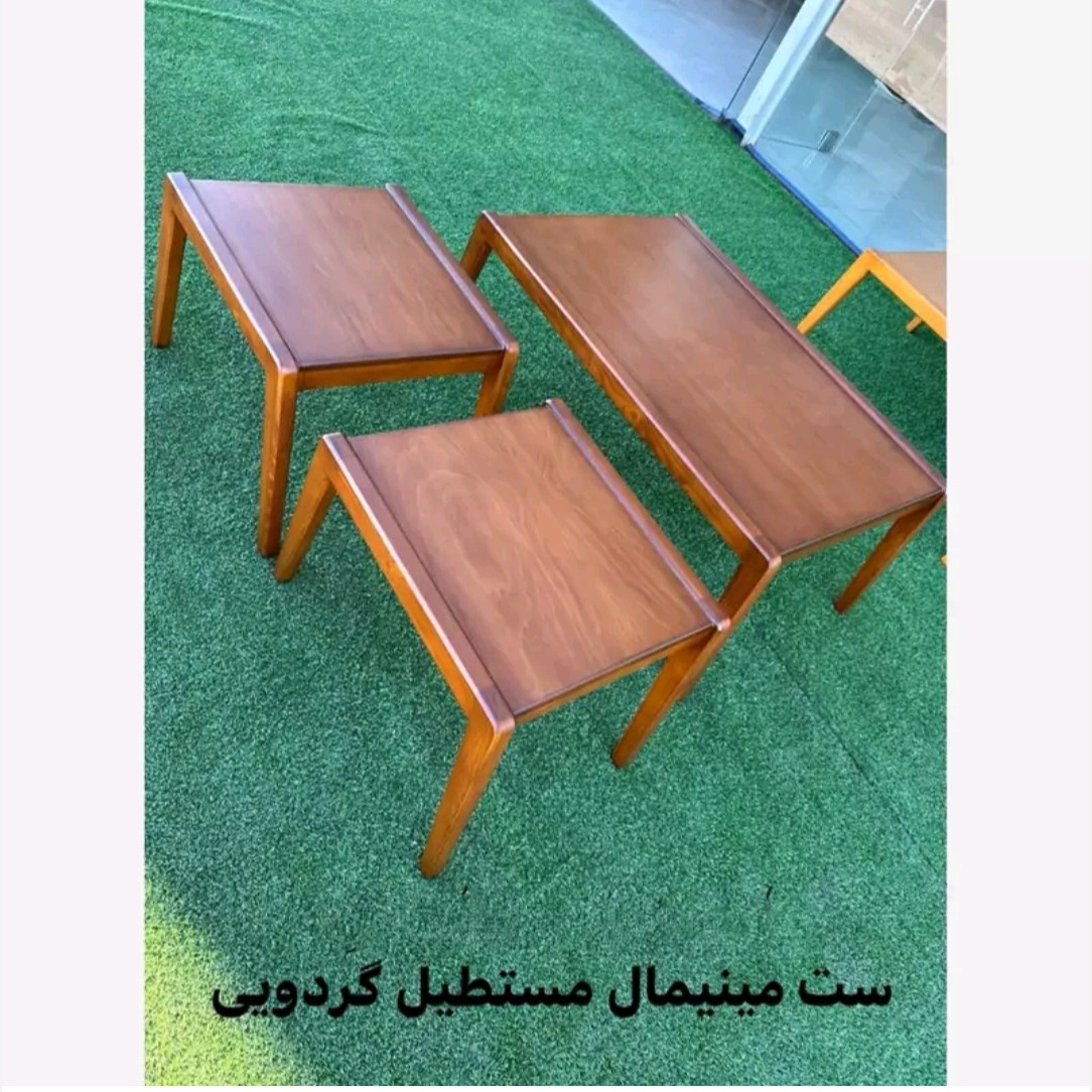جلومبلی مدل مینیمال لبه دار شامل یک میز و دوعدد عسلی رنگ بندی دارد چوب روس صفحه روکش راش ارسال به سراسر کشور بصورت