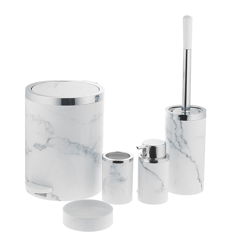 این مدل ست سرویس بهداشتی و حمام علاوه بر ظاهر زیبا از کیفیت ساخت بالایی برخوردار است. علاوه بر داشتن تمامی تکه های مهم و مورد نیاز یک ویژگی بسیار مهم دارد و آن عملکرد سطل زباله آن است، که درب سطل هم بصورت باد بزنی و هم بصورت پدالی قابل استفاده است یک عده از مصرف کنندگان در هنگام استفاده از سرویس فرنگی تمایل به استفاده از سطل های درب باد بزنی دارند که این مدل هر دو طیف مشتری را راضی نگه می دارد. در ضمن درب سطل به روونی و سادگی بسیار زیاد قابل استفاده می باشد. جنس این محصول از پلاستیک بسیار با کیفیت (ABS) و جدیدترین تکنولوژی آبکاری (آبکاری تحت خلا PVD) که کاملا مناسب محیط های مرطوب مثل سرویس بهداشتی و حمام می باشد.