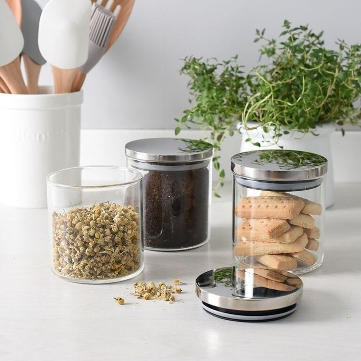 بانکه پیرکس درب استیل قطر 8سانت ارتفاع 8 سانت داری درب واشر دار