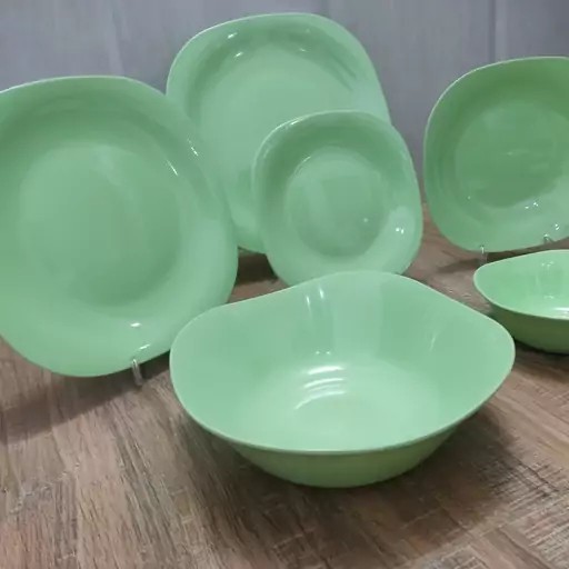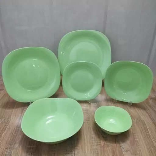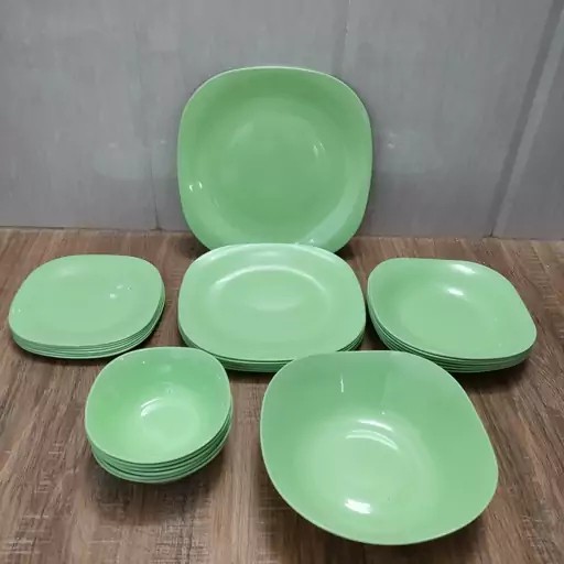 سرویس ملامین مربع رنگی سبز نشکن 26 پارچه مارک یزد ملامین دارای استاندارد مبلمونسرا مدل 275464
