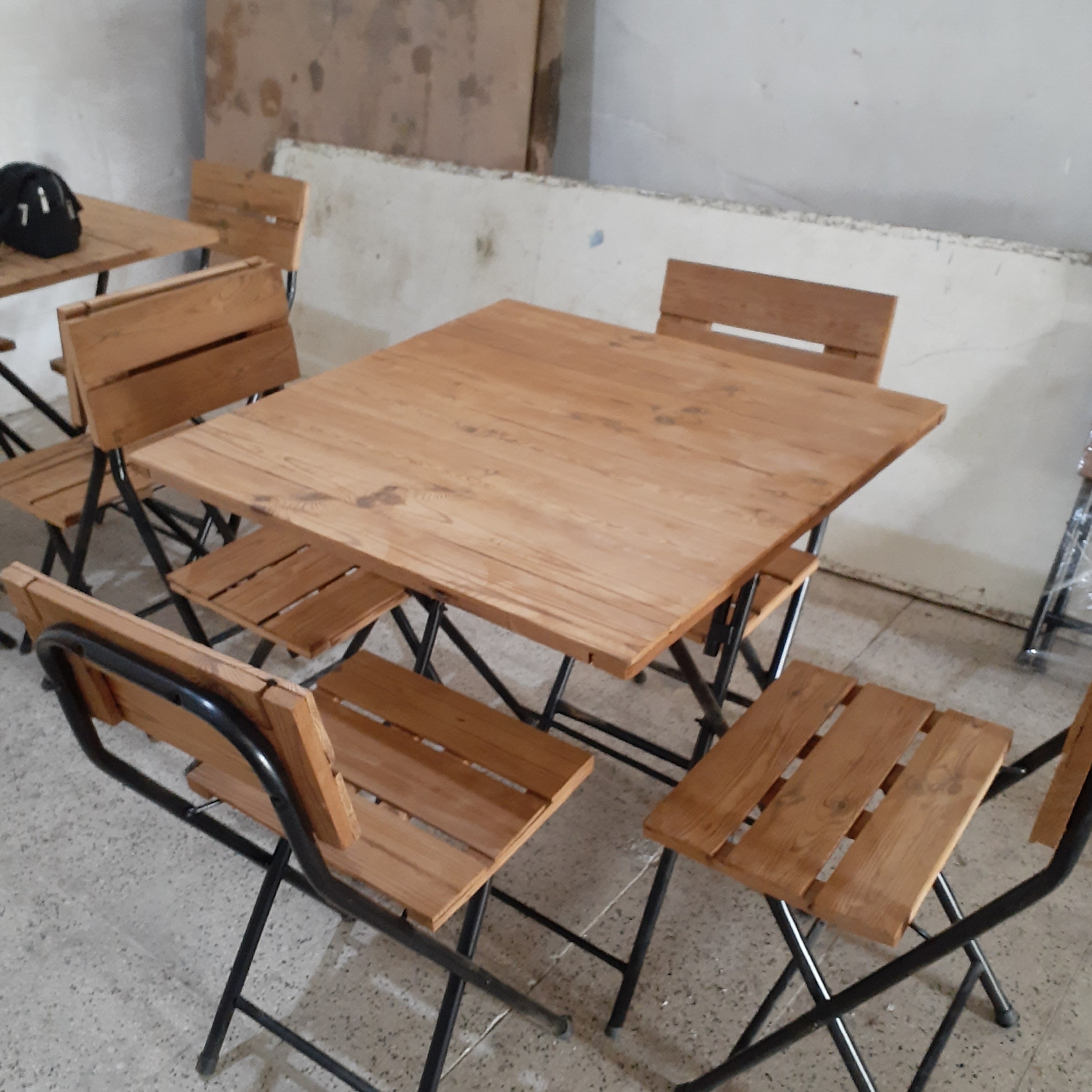 جنس چوب ترم وود تا 180 وزن صندلی ها تحمل میکن تمام صندلی ها با پیچ ومیخ خورده شده اندازه میز70 در 75