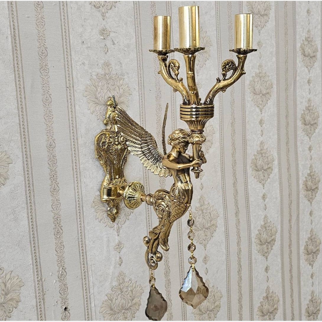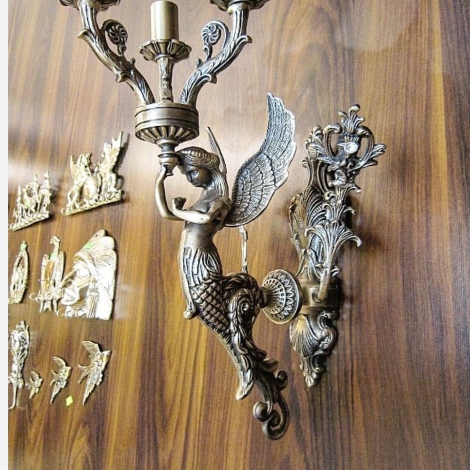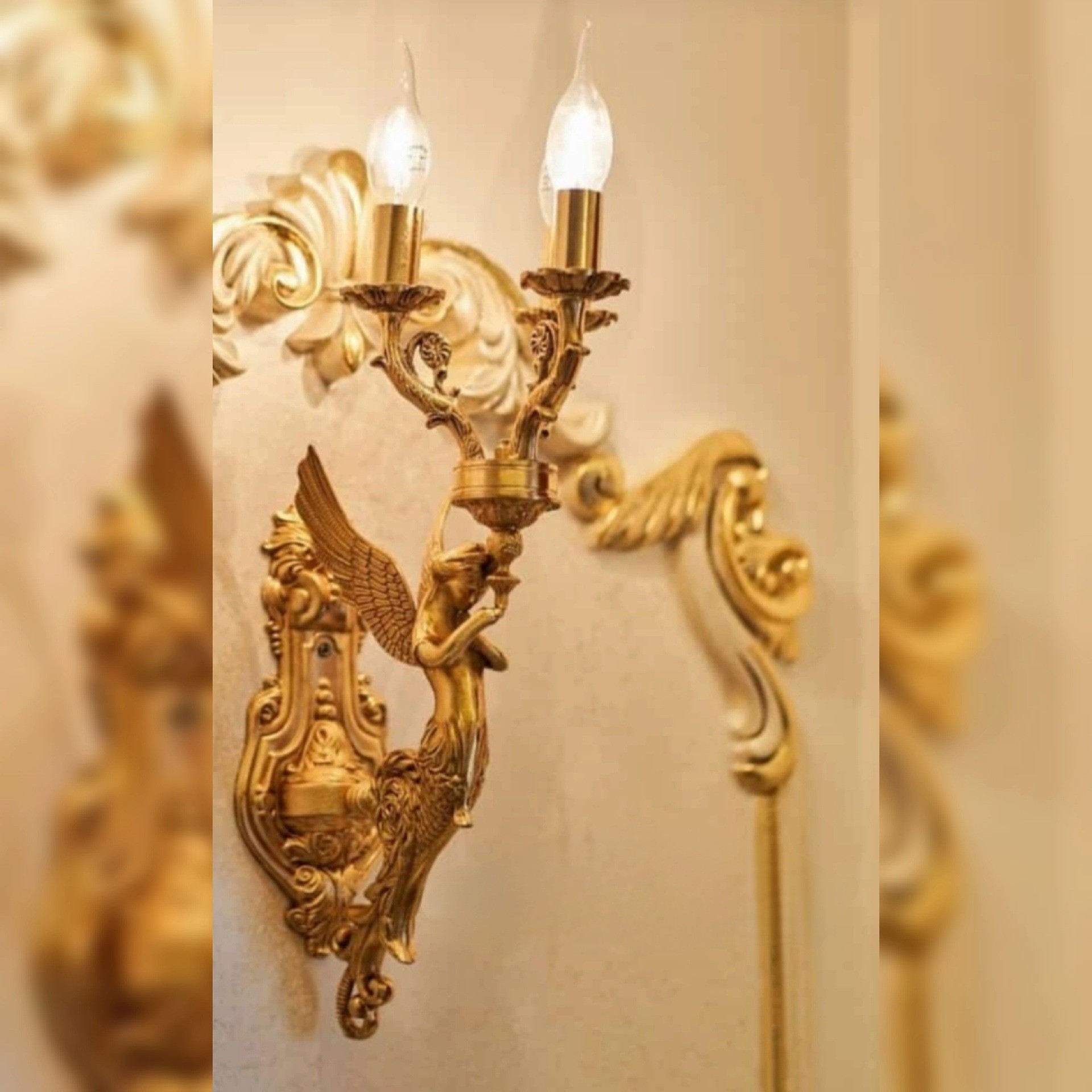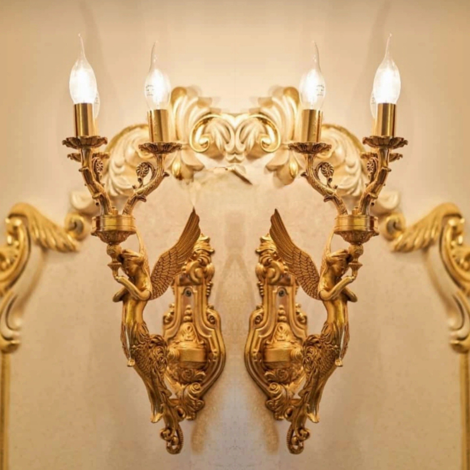 لوستر دیواری فرشته دیوارکوب ملکه آباژور شب خواب ملکه برنزی برنجی پتینه آنتیک برنز لاله کریستال تالاری مبلمونسرا مدل 234533