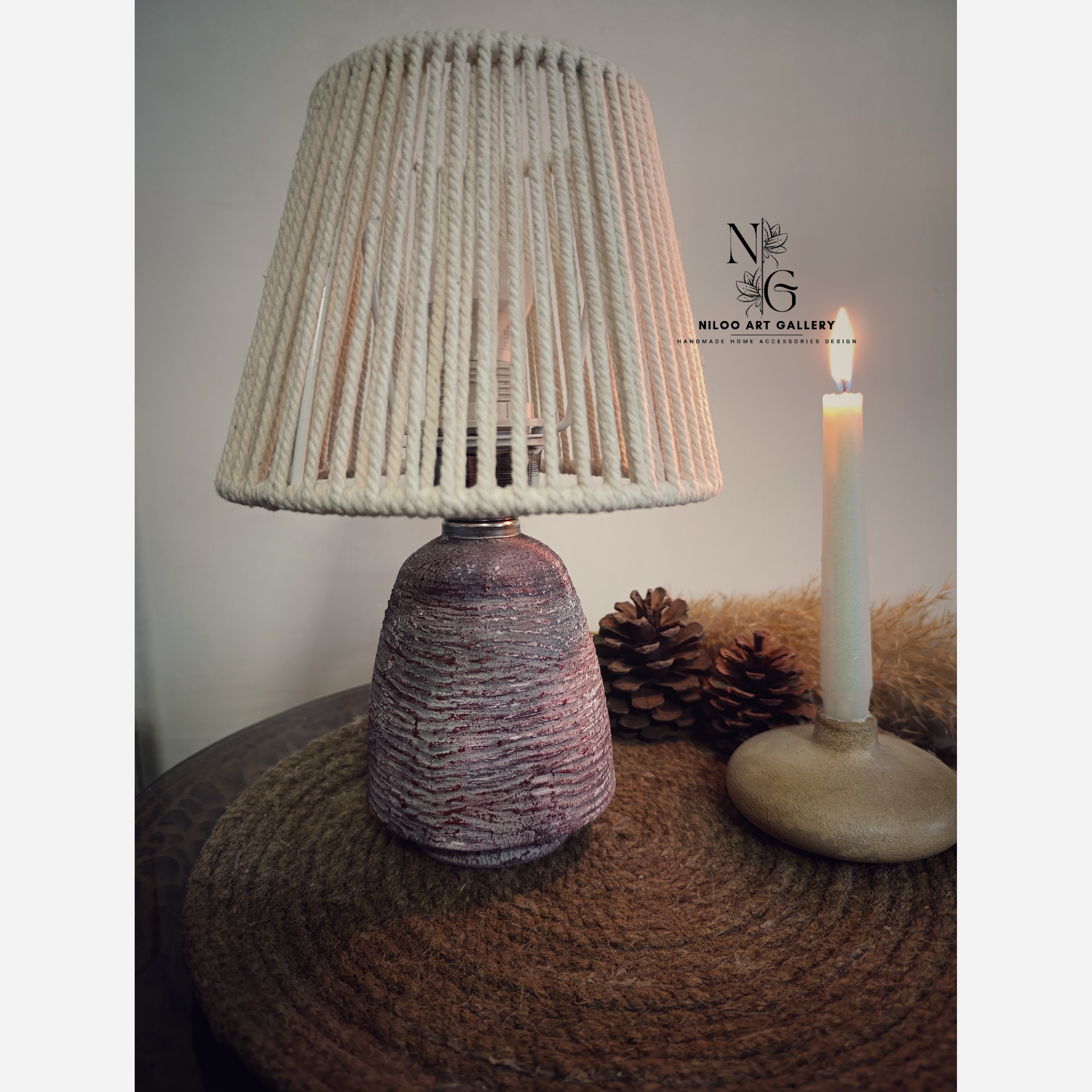 آباژور پایه سفالی با شید کنفی مبلمونسرا مدل 232082