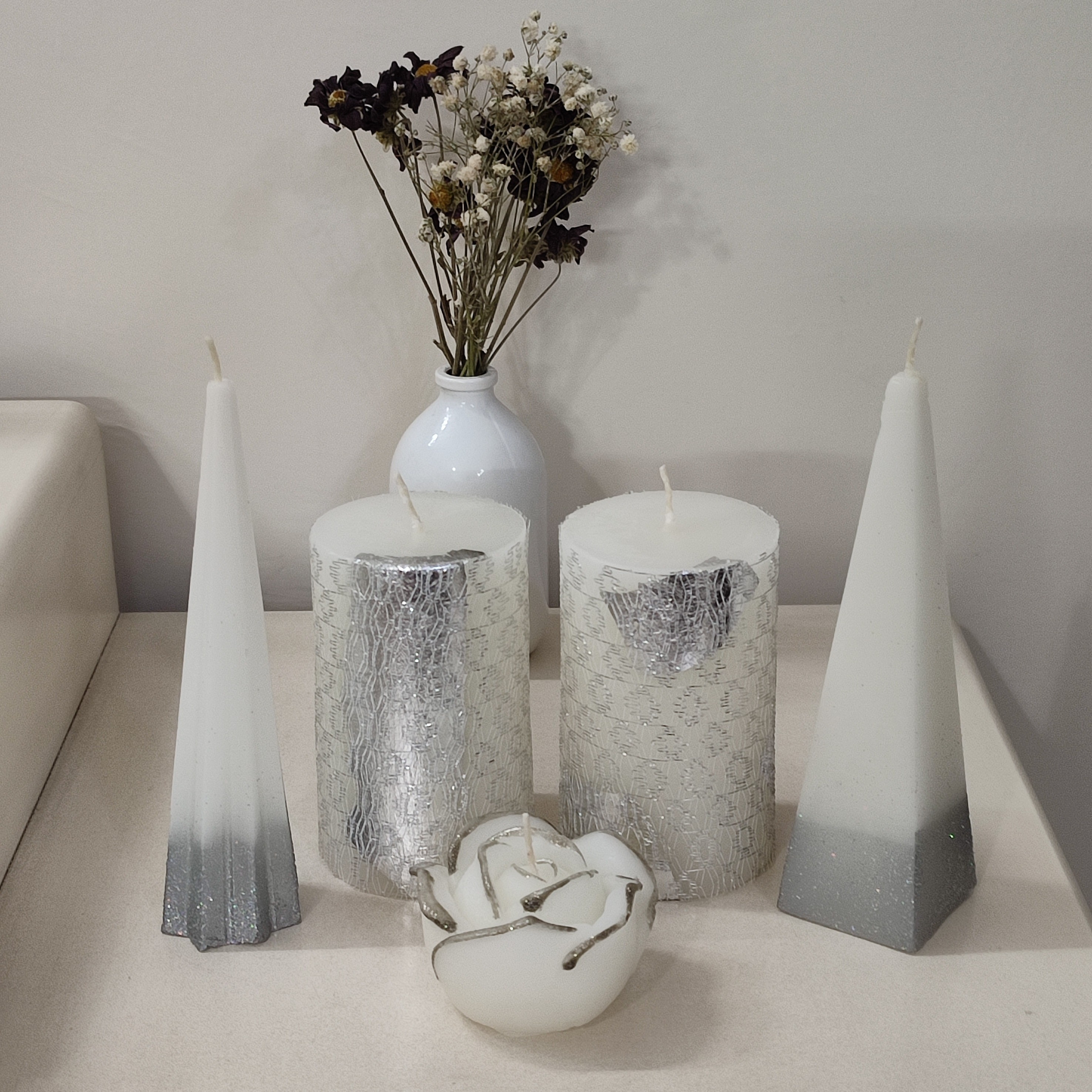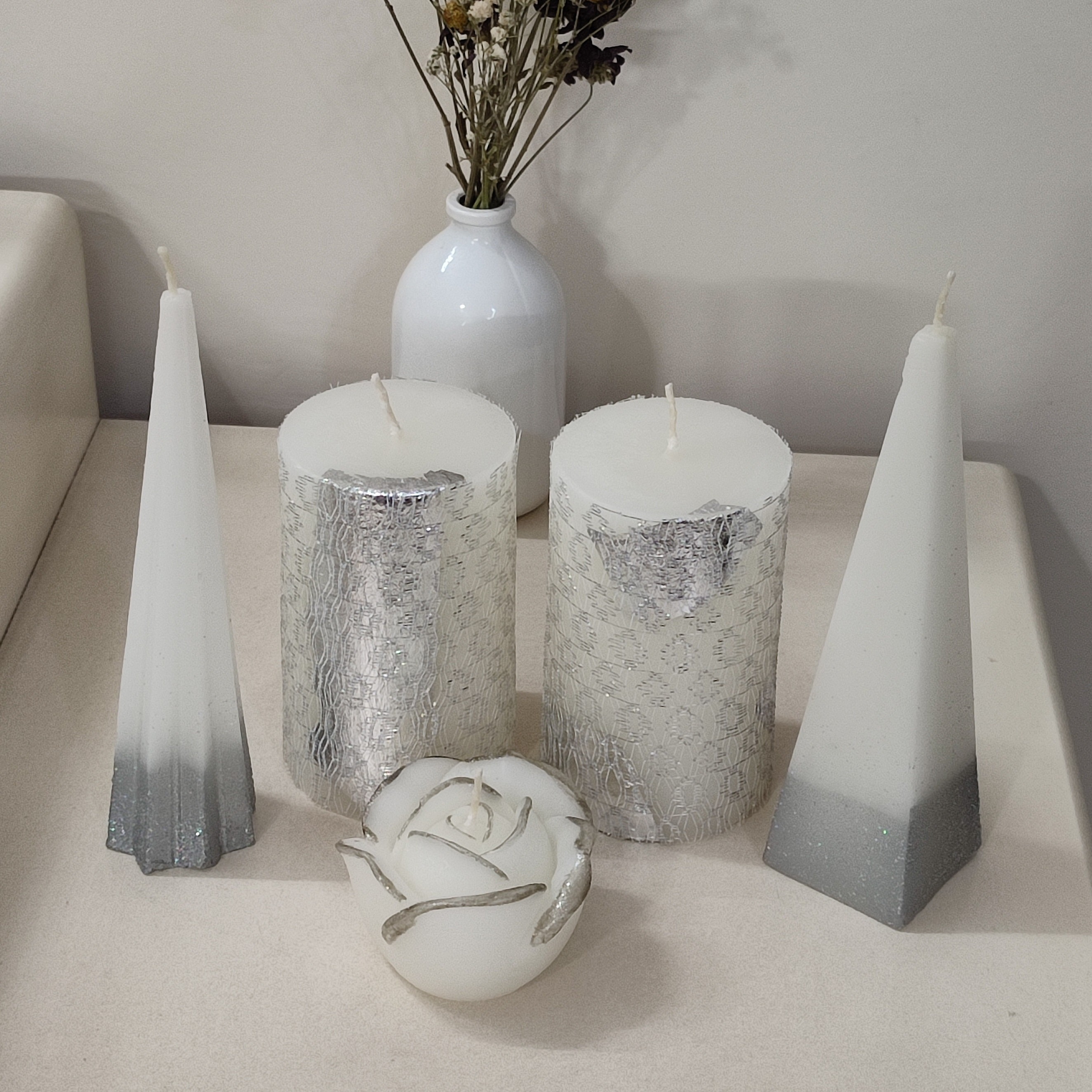 شمع استوانه نقره ای 5عددی مبلمونسرا مدل 286600