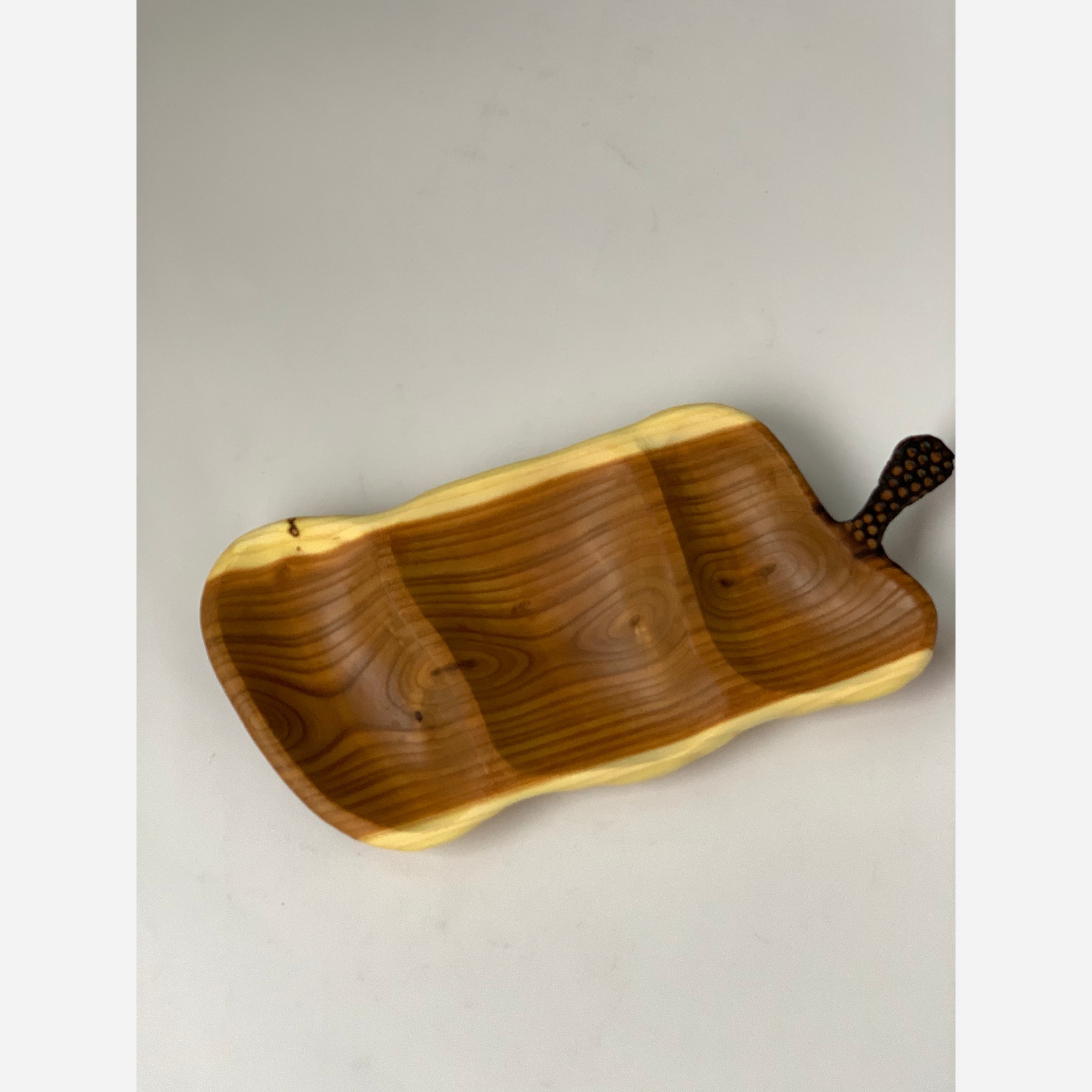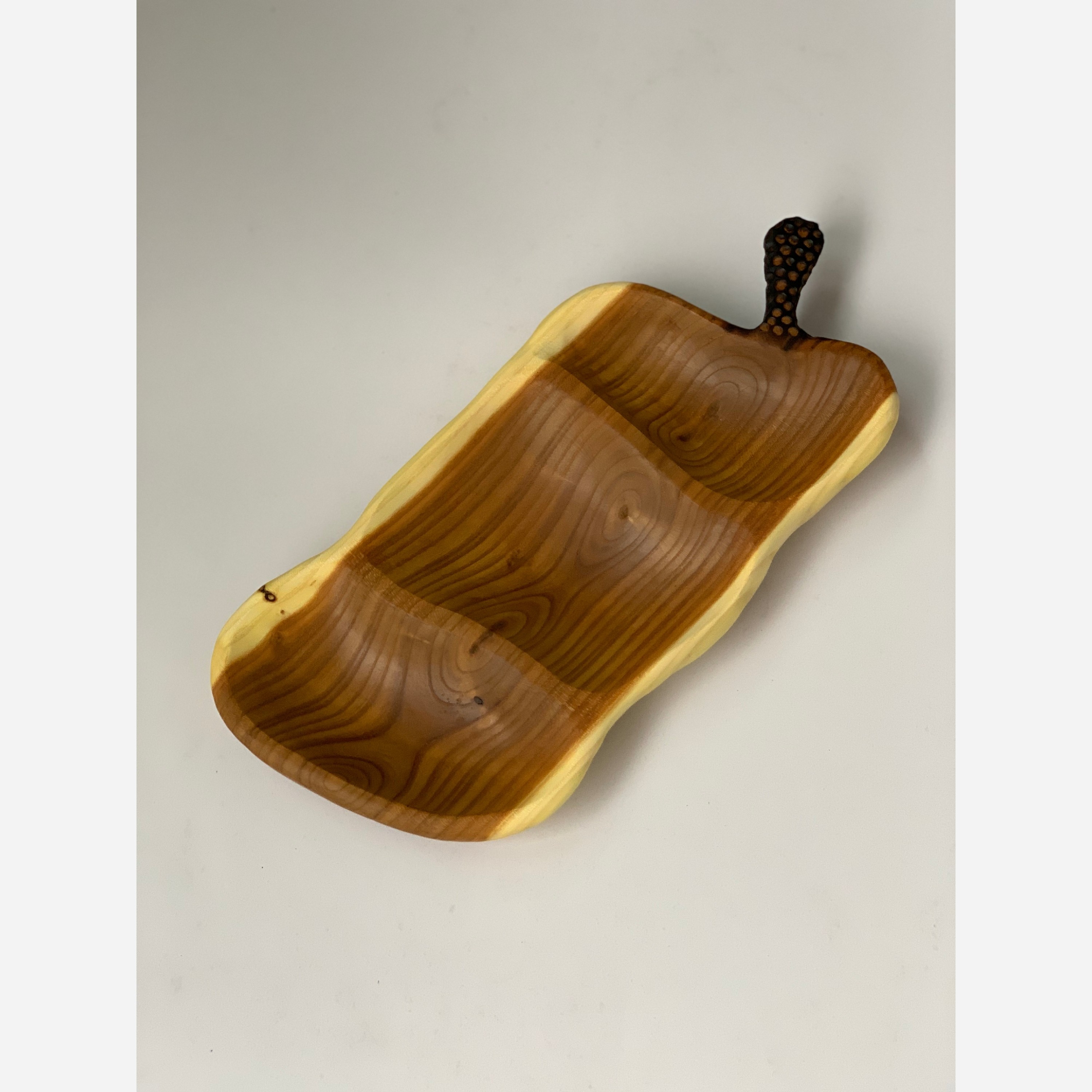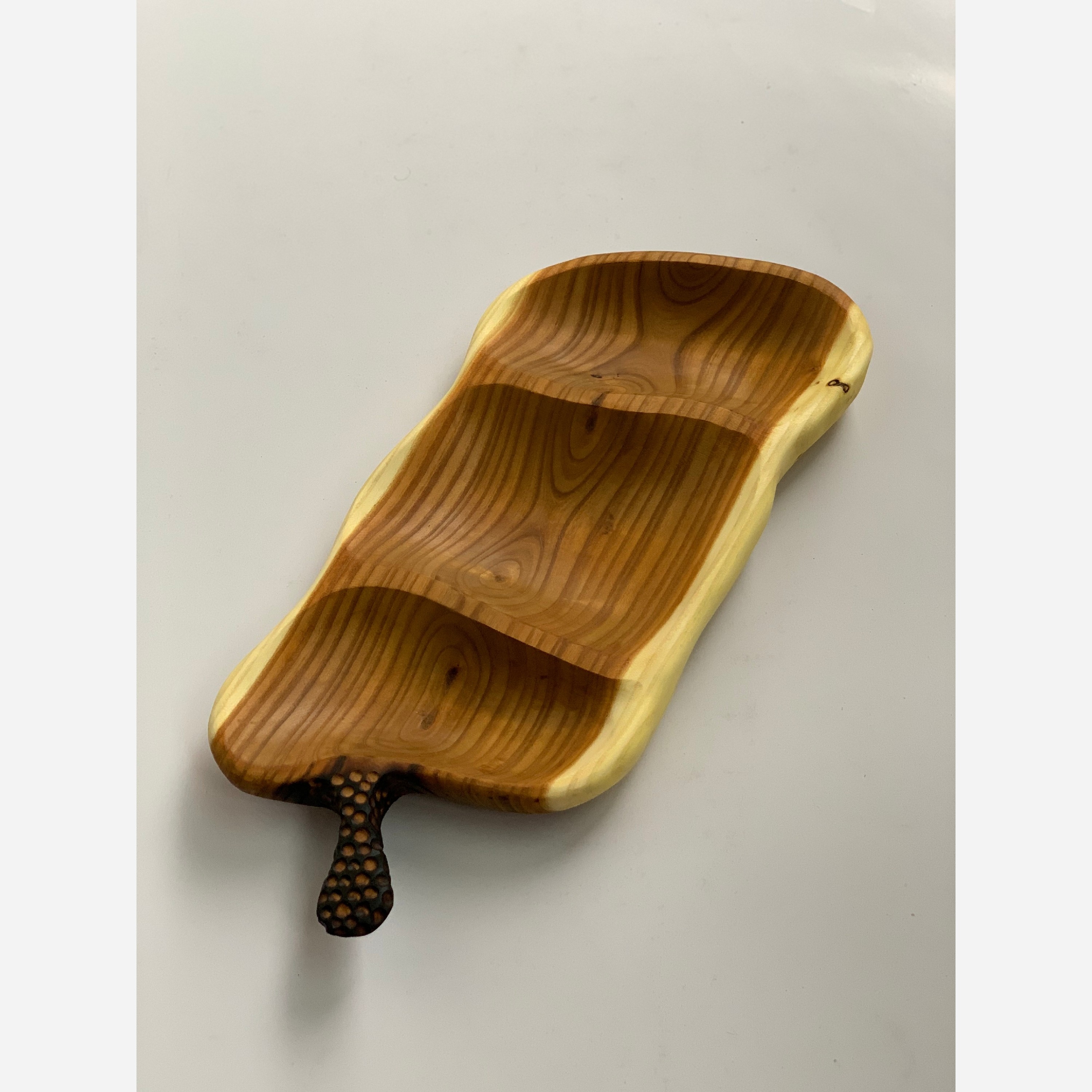 ساخته شده با چوب سنجد پرداخت این کار تا سنباده ی 600 و پوشش با روغن کاملا گیاهی و آبگریز