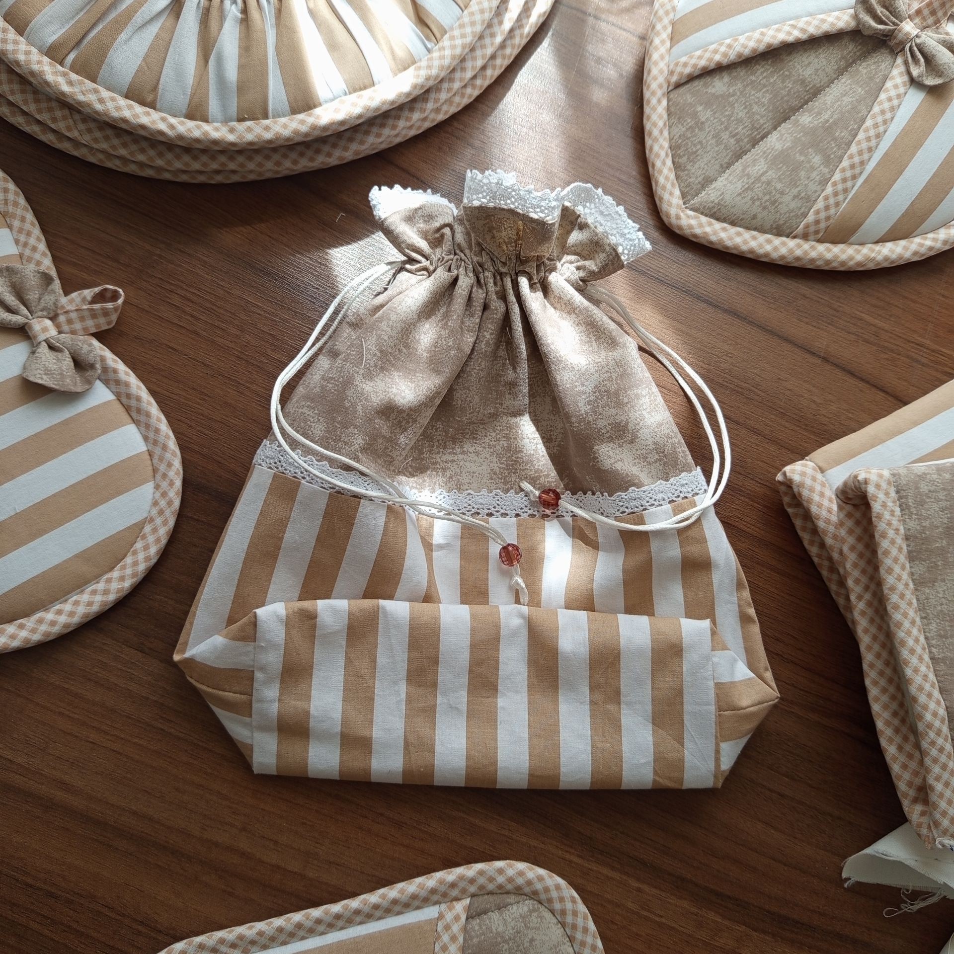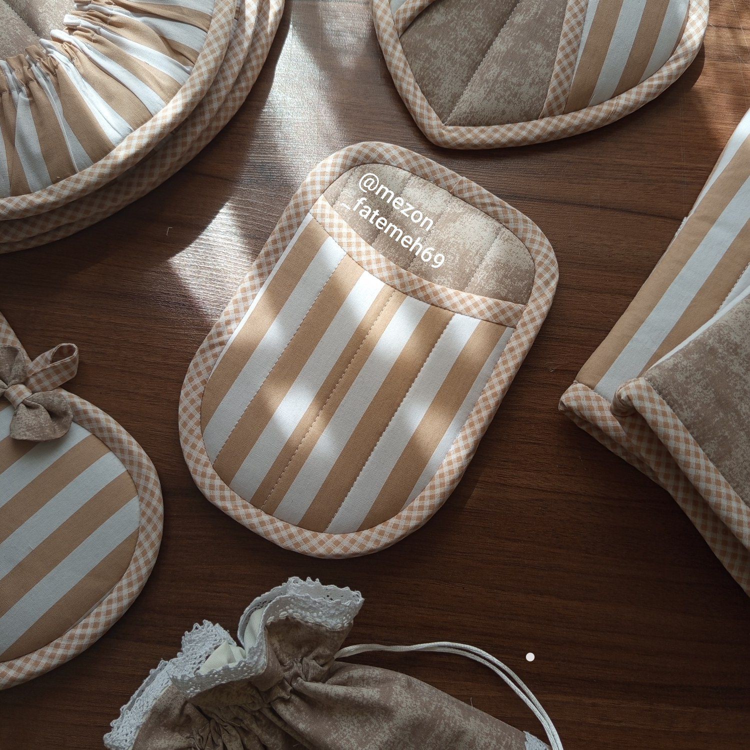 سرویس آشپزخانه جنس کتان ترک با ضمانت نسوز بدون رنگ دهی 4لایه کار میشه در هر طرح و رنگی قابل اجراست 16 تیکه بسیار کاربردی برای پیشبند و نمگیر از برزنت استفاده میشه که مقاوم در برابر حرارت و قابل اتو کشی هست بهترین متریال برای داخلش استفاده میشه تیکه ها قابل کم یا اضافه شدن هستن ست دمکنی،دستگیره قلبی ،دستکش فر،سفره پاکن،دمکنی فری سایز بزرگ برای مهمانی،کاور قابلمه سایز 60،زیر قابلمه ای ،حوله مدل قلبی،کیسه سبزی، کیسه نان ،پیشبند، نمگیر سایز 50در 90