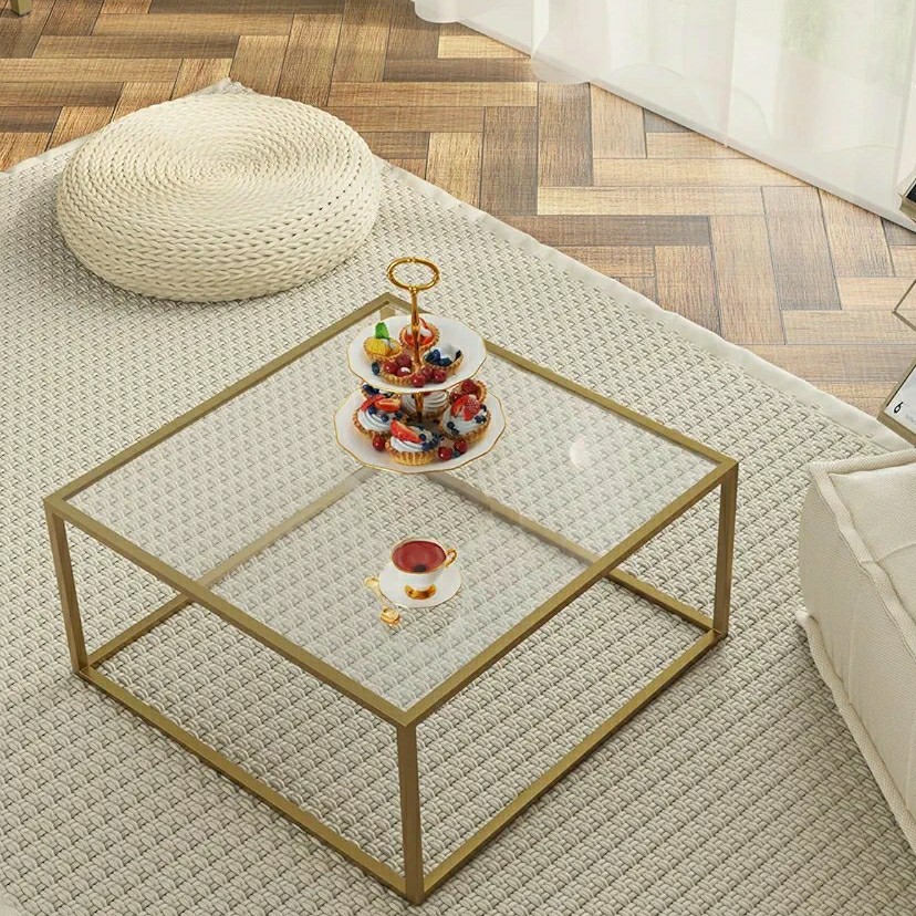 میز جلو مبلی طلایی مربع/میز وسط فلزی مبلمونسرا مدل 220558