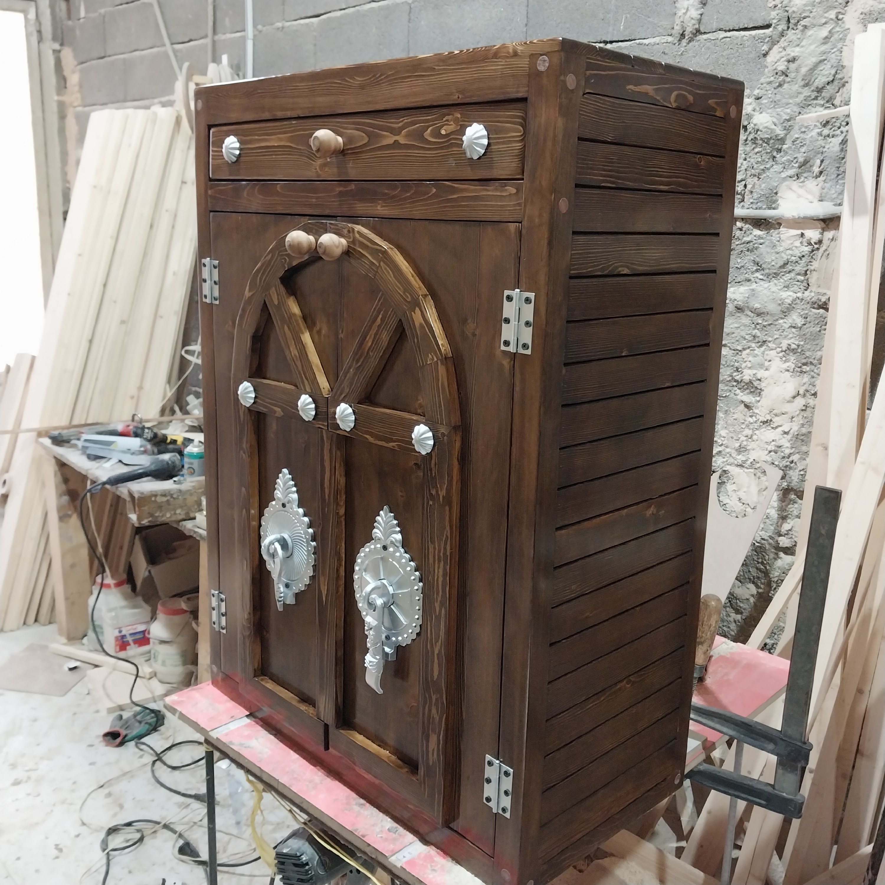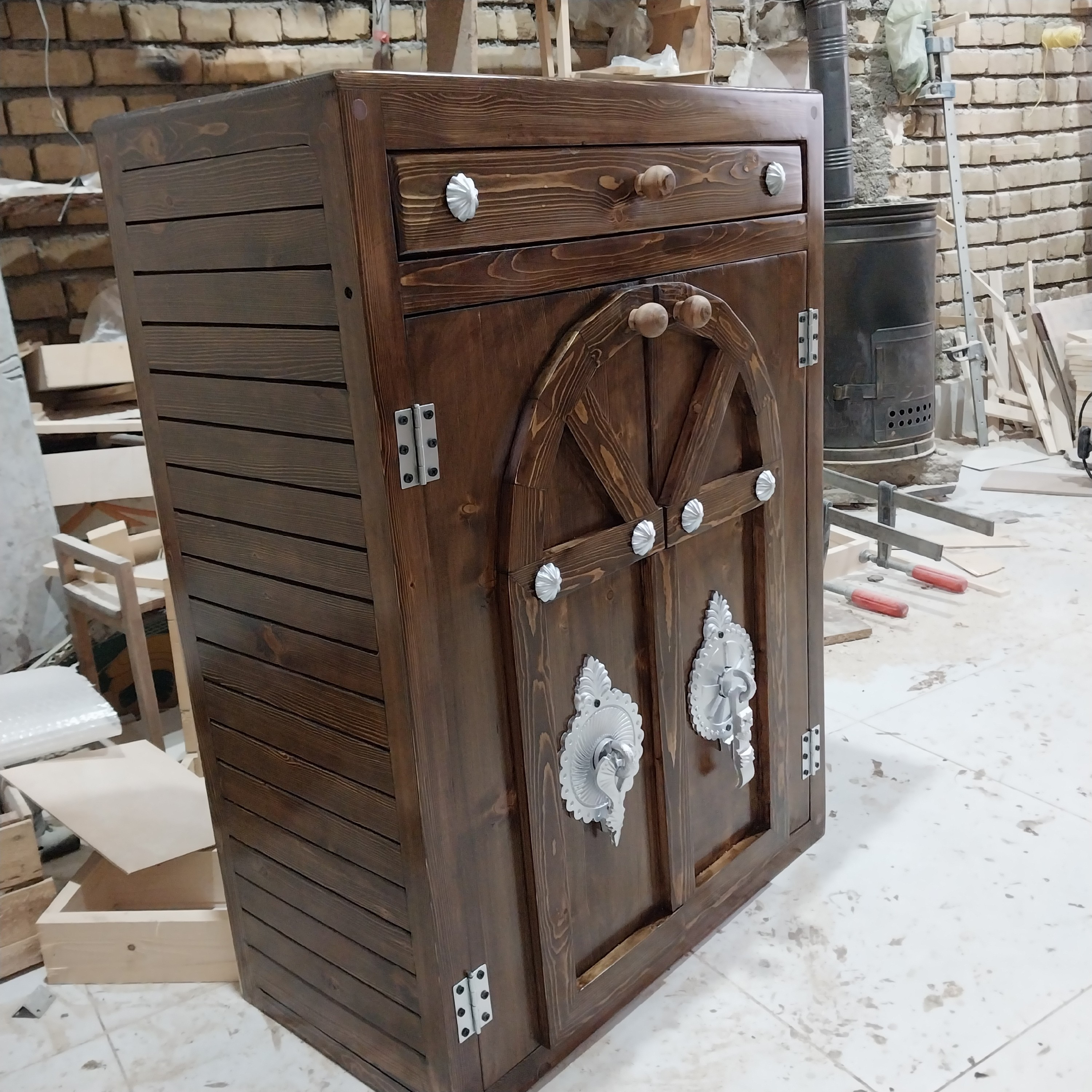 ابعاد ،نود ارتفاع،75 سانت طول و عمق 33 سانت تمام چوب دارای 4 طبقه و یک کشو خودرنگ چوب با روکش نیم پلی استر