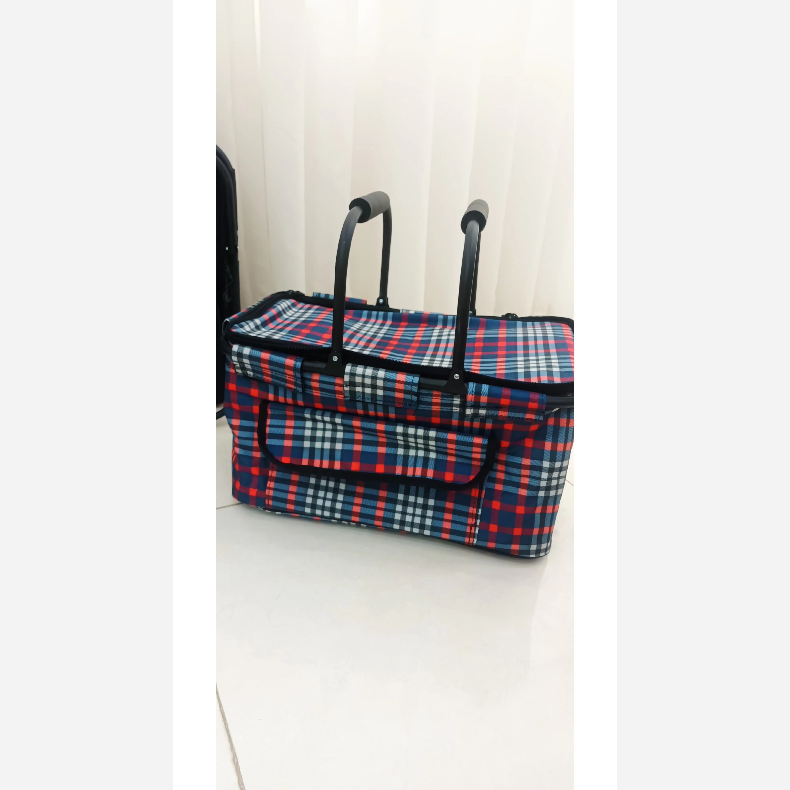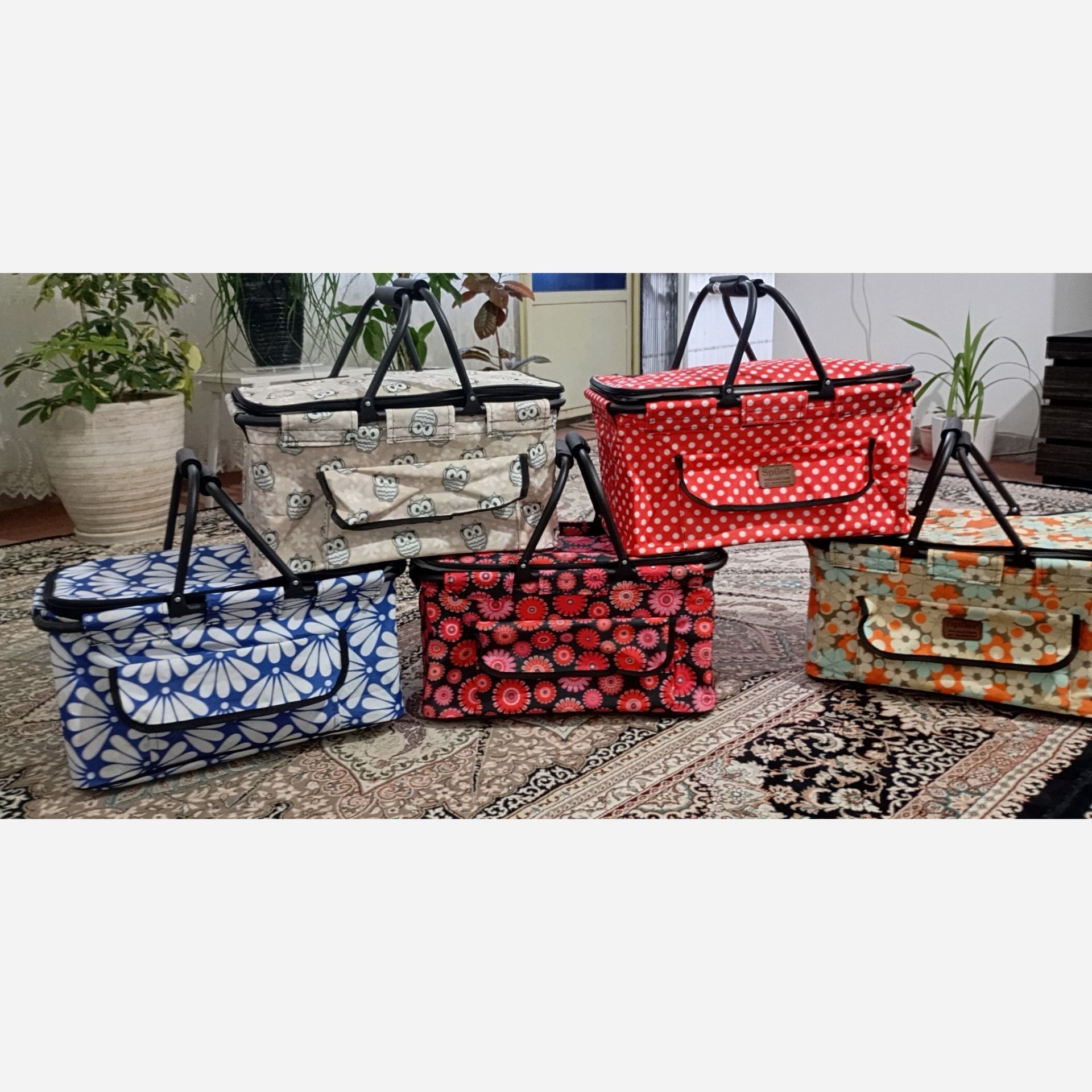 سبد پیک نیک تاشو با رنگبندی موجود در عکس قابلیت گرم نگهداشتن غذا لایه داخلی ضدآب دسته آهنی مقاوم