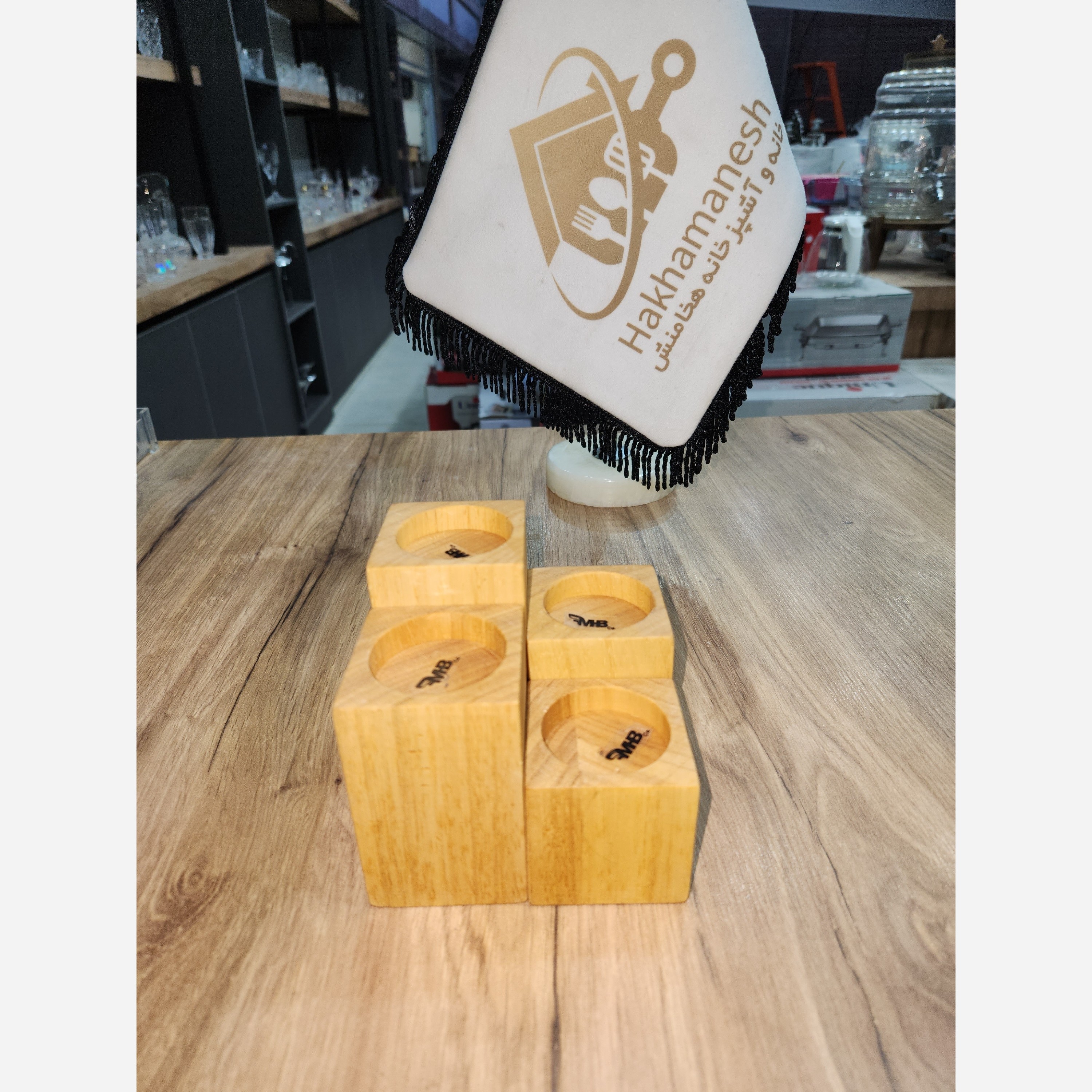 جا شمعی چوبی مکعب مستطیل 4 تایی مخصوص شمع سکه ای مبلمونسرا مدل 283337