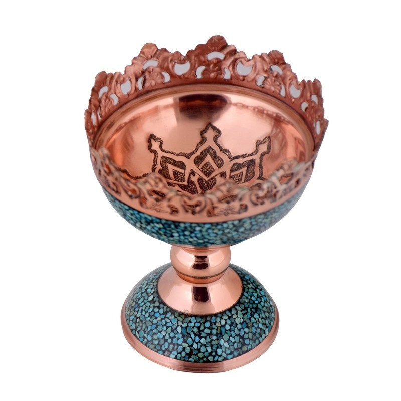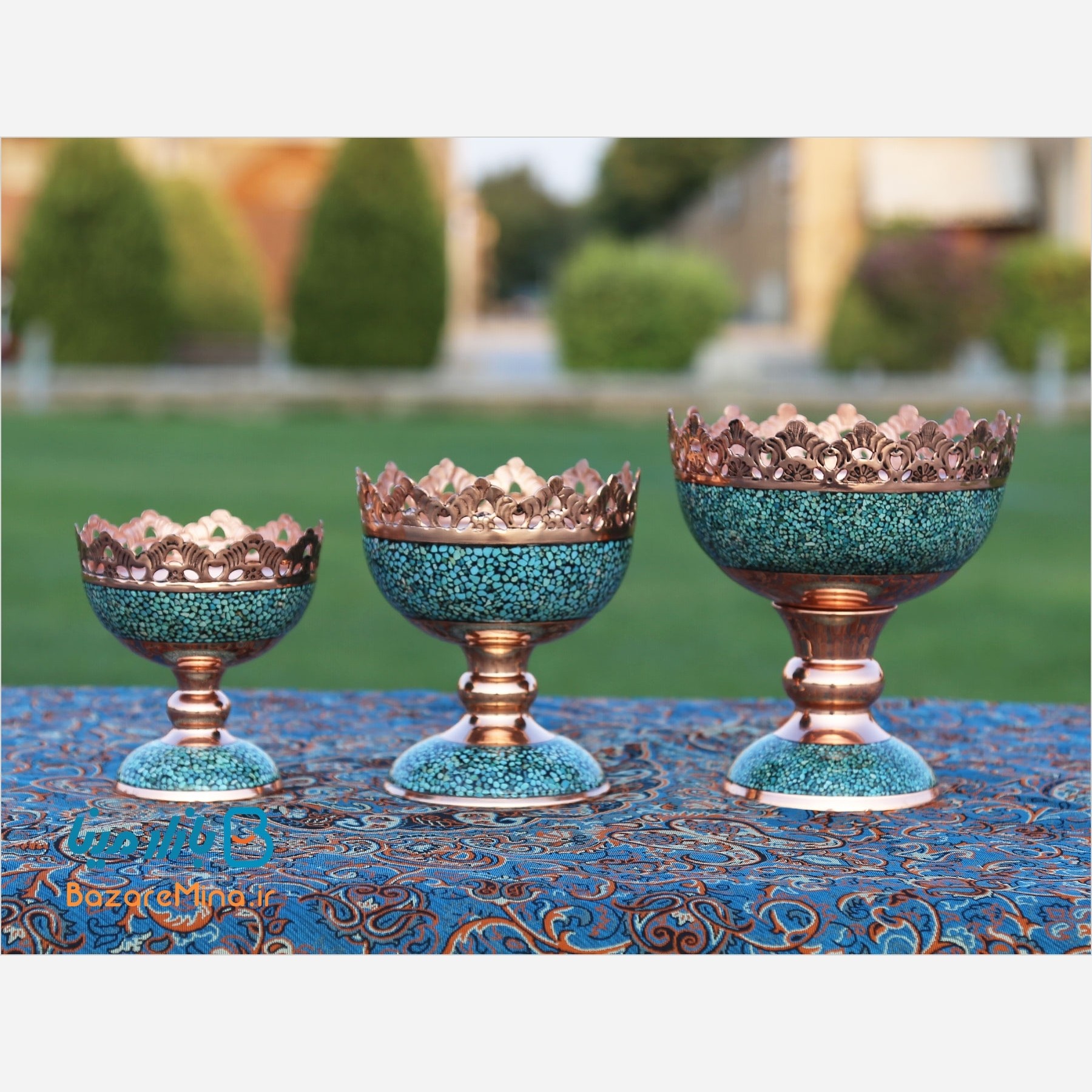 آجیل خوری پایه دار ارتفاع10 سانتی متر جنس مس و فیروزه اصل بدون تغییر رنگ قابل شستشو کیفیت عالی