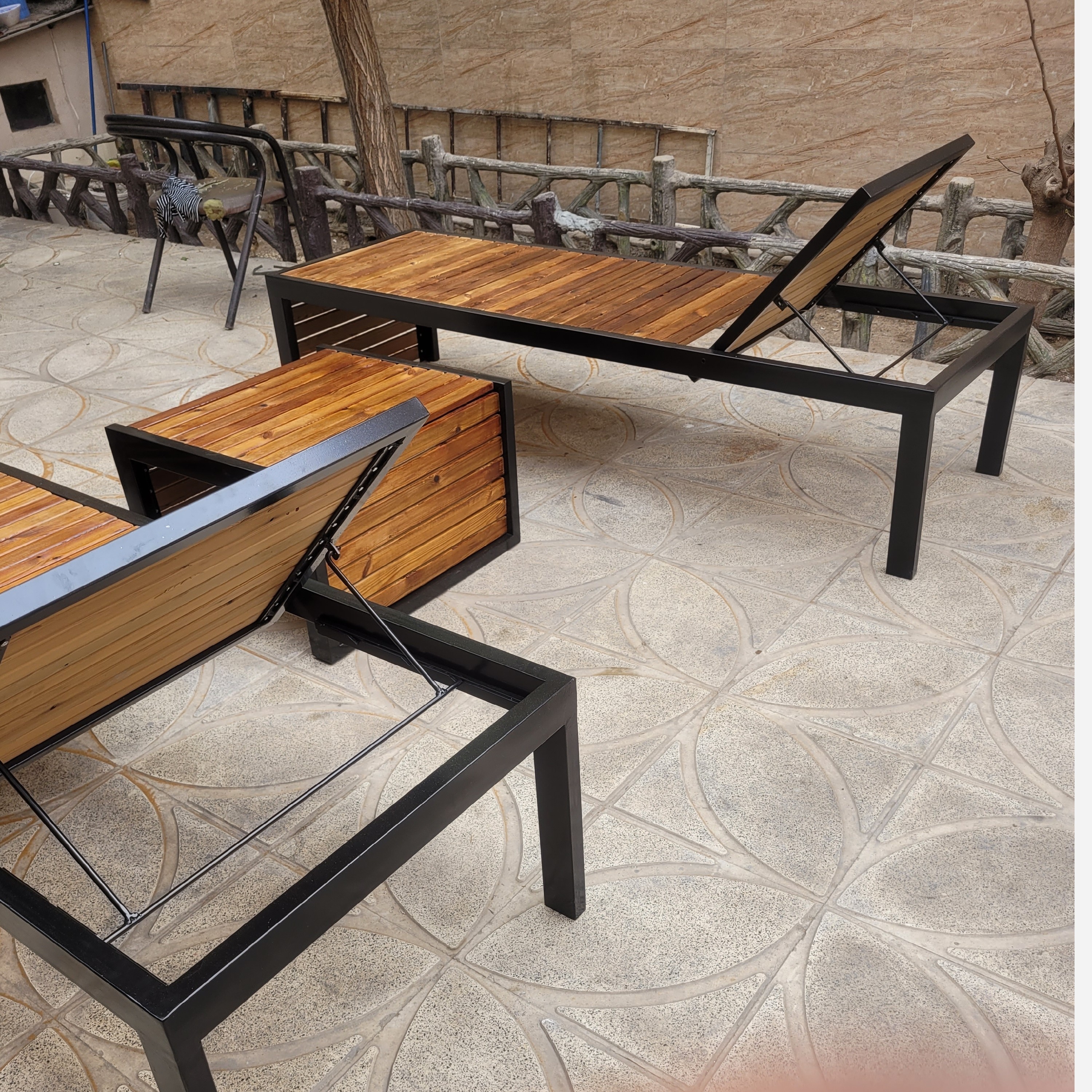 تخت کنار استخر فلز و چوب ترموود مبلمونسرا مدل 235278