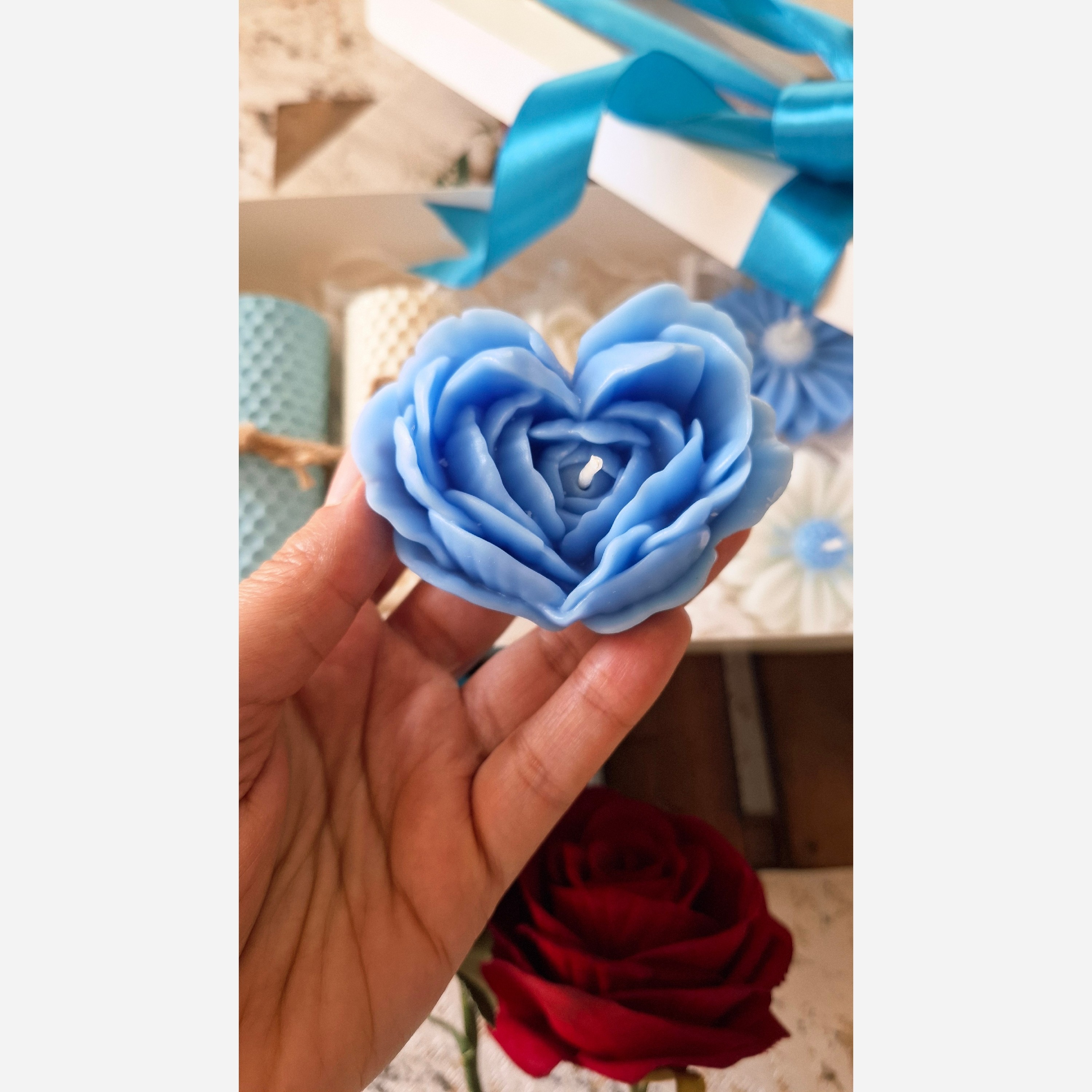 پک هدیه شمع موم عسل و رز قلبی صورتی مبلمونسرا مدل 285475