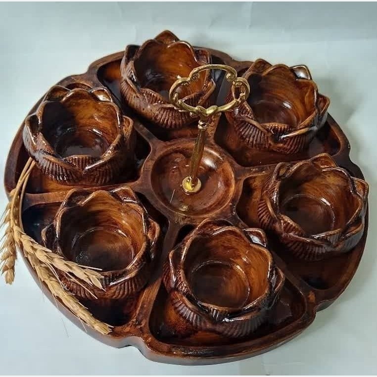 ست پذیرایی آلاله شامل اردوخوری طرح 7 خانه و 6 تا کاسه آلاله مناسب برای پذیرایی، آجیل خوری و شکلات خوری، مزه خوری و غیره ✅قابل شستشو و ضدآب ✅ باکیفیت و با دوام ✅ منحصر به فرد و سفارشی قابل سفارش در هر طرح و رنگ دلخواه شما