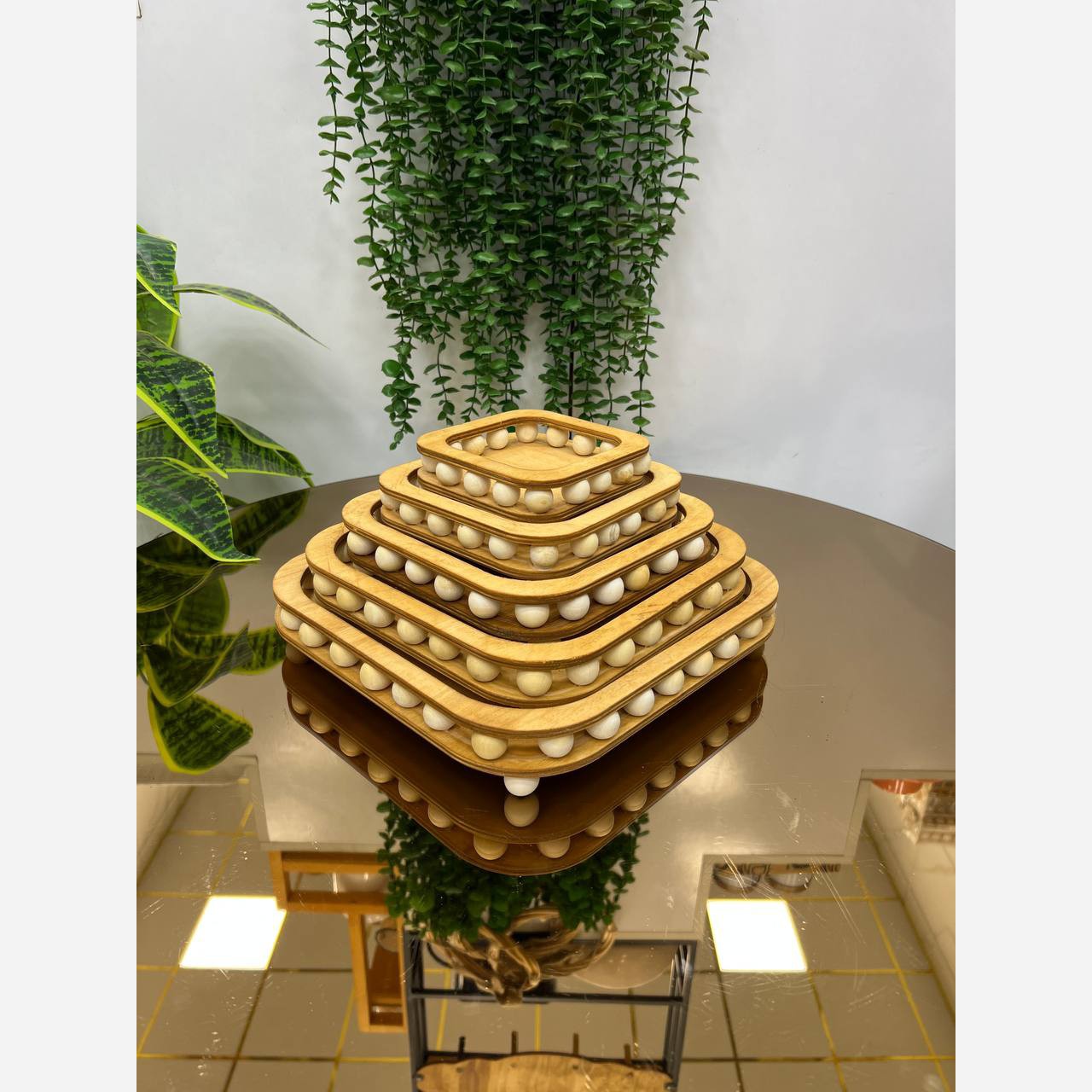 ست تنقلات خوری و مزه خوری پنج تیکه مهره دار مربع مبلمونسرا مدل 278259