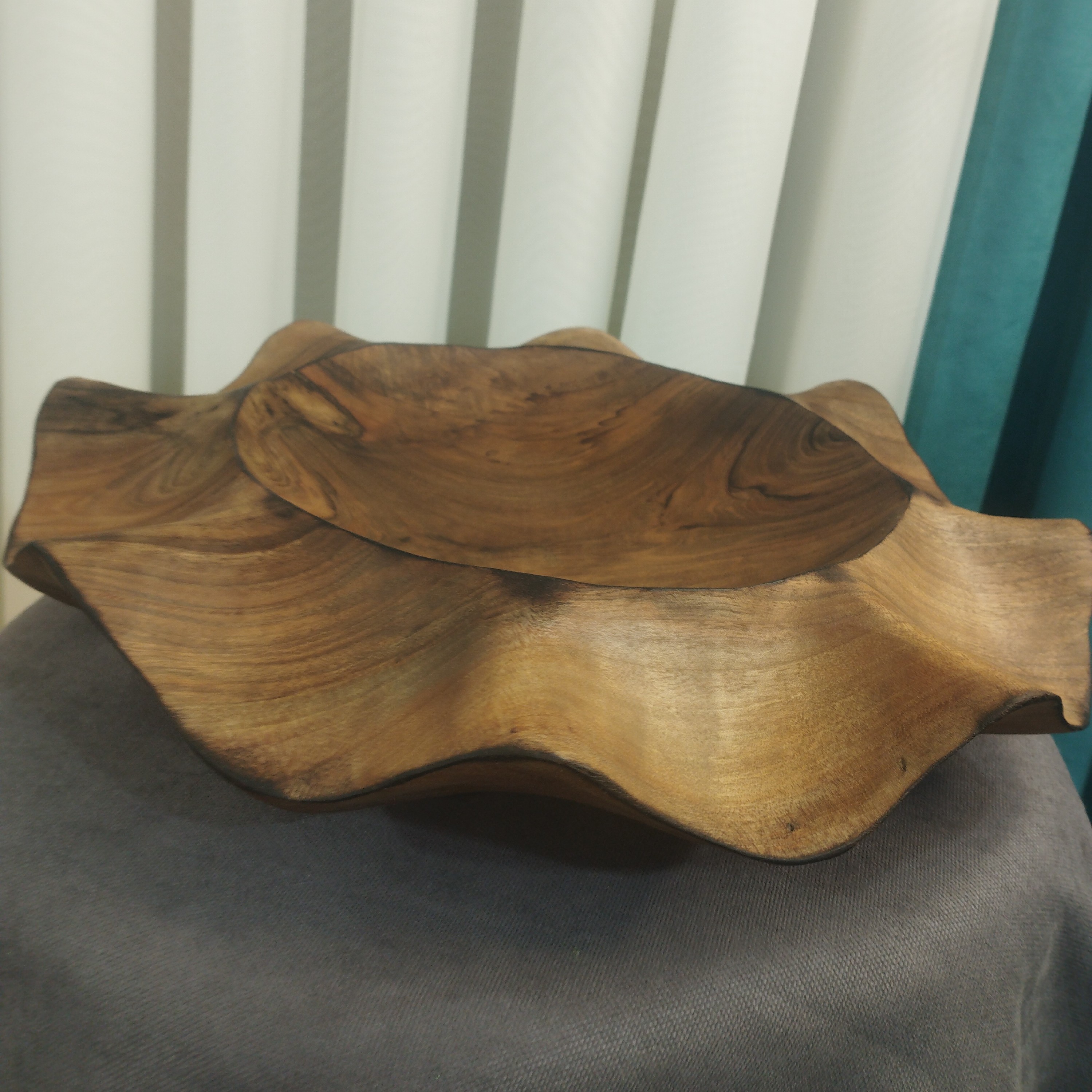 ظرف میوه خوری دست ساز ساخته شده از چوب گردو قطر ظرف 30 سانت