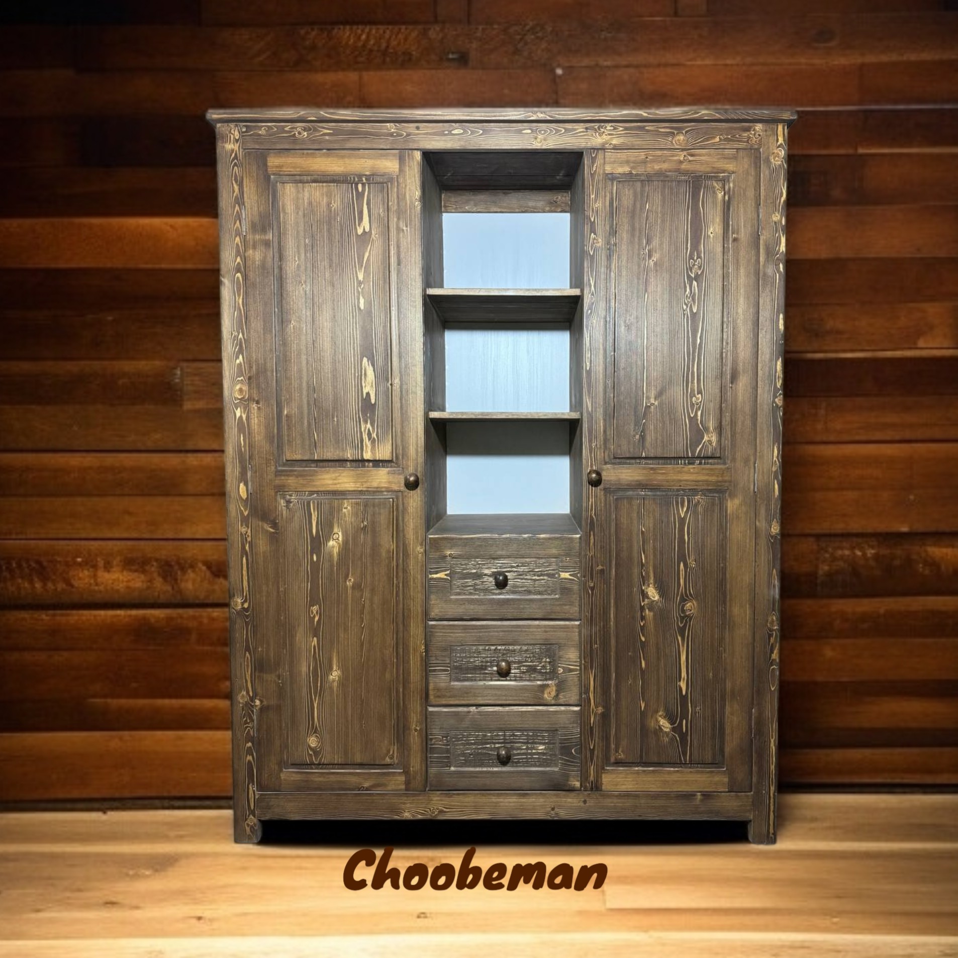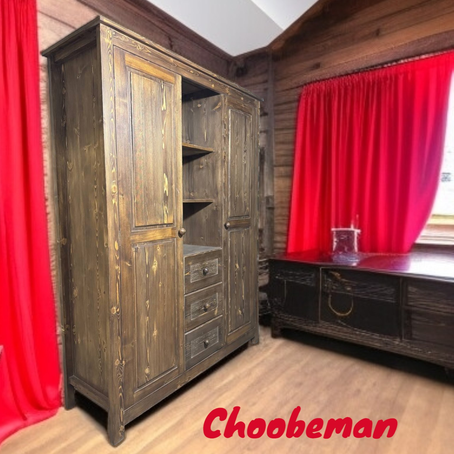 این کمد بطور کامل دست ساز بوده و با چوب روس ساخته شده است. غیر از چوب هیچ متریال دیگری همچون روکش نئوپان، ام دی اف، چوب پلاست و... در ساخت آن بکار نرفته است طرح ها و نقش و نگار سطح چوب ظاهری زیبا و سنتی به کار بخشیده است این محصول بسیار جادار بوده و فضای لازم برای انواع لباس، کفش، کیف و لوازم دیگر را دارد و در قسمت میانی نیز دارای سه کشو و سه طبقه در بالای کشوها میباشد که به عنوان دکور و کتابخانه قابل استفاده است. با توجه به انداز و فضای داخلی کمد حتی قابلیت استفاد به عنوان کمد دیواری را دارد توضیح در مورد رنگ محصول: اجرای رنگ روشن تا تیره بر روی محصول به درخواست مشتریان محترم مقدور میباشد. بر روی این محصول علاوه بر رنگ مخصوص چوب، عملیات رنگ کاری سیلر و کیلر انجام شده و پوششی مقاوم جهت محافظت از آن در برابر هوا، رطوبت، حشرات و... ایجاد کرده است. این پوشش علاوه بر خاصیت محافظت کنندگی بالا؛ موجب استحکام بیشتر محصول شده و به زیبایی و لطافت کار می افزاید. در صورت درخواست مشتریان محترم امکان اعمال پوشش رنگ رزینی بر روی محصول وجود دارد. این پوشش با ایجاد یک لایه شفاف و شیشه ای بر سطح کار علاوه بر افزایش فوق العاده استحکام و مقاومت محصول در برابر نفوذ رطوبت و خوردگی توسط حشرات و پوسیدگی در مجاورت هوا و... تماس با محصول را لذت بخش و زیبایی ظاهری آن را دو چندان میکند. هزینه اجرای پوشش رزینی 35 درصد به قیمت محصول اضافه میکند. امکان ساخت با اشکال ظاهری متفاوت و طرح های گوناگون، مورد سفارش مشتریان محترم از طریق صفحه گفتگو وجود دارد از آنجایی که این محصول به درخواست و سفارش مشتریان محترم ساخته میشود ضمن عذرخواهی امکان لغو سفارش وجود ندارد