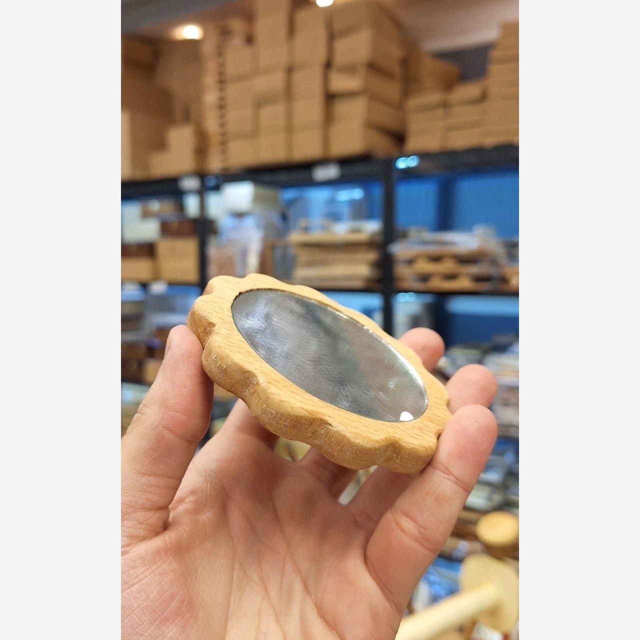 آینه گل– زیبایی در قاب طبیعت این آینه کوچک و ظریف با طراحی الهامگرفته از گل، از چوب راش طبیعی ساخته شده و جلوهای گرم و دلنشین به هر فضایی میبخشد. با قطر 9 سانتیمتر و ضخامت 1 سانتیمتر، انتخابی ایدهآل برای دکورهای دیواری، میز آرایش یا حتی استفاده بهعنوان یک هدیه خاص و هنری است. سادگی طراحی در کنار بافت طبیعی چوب، حس آرامش و لطافت را به محیط شما اضافه میکند. یک جزئیات کوچک، اما تاثیرگذار در زیبایی چیدمانتان.