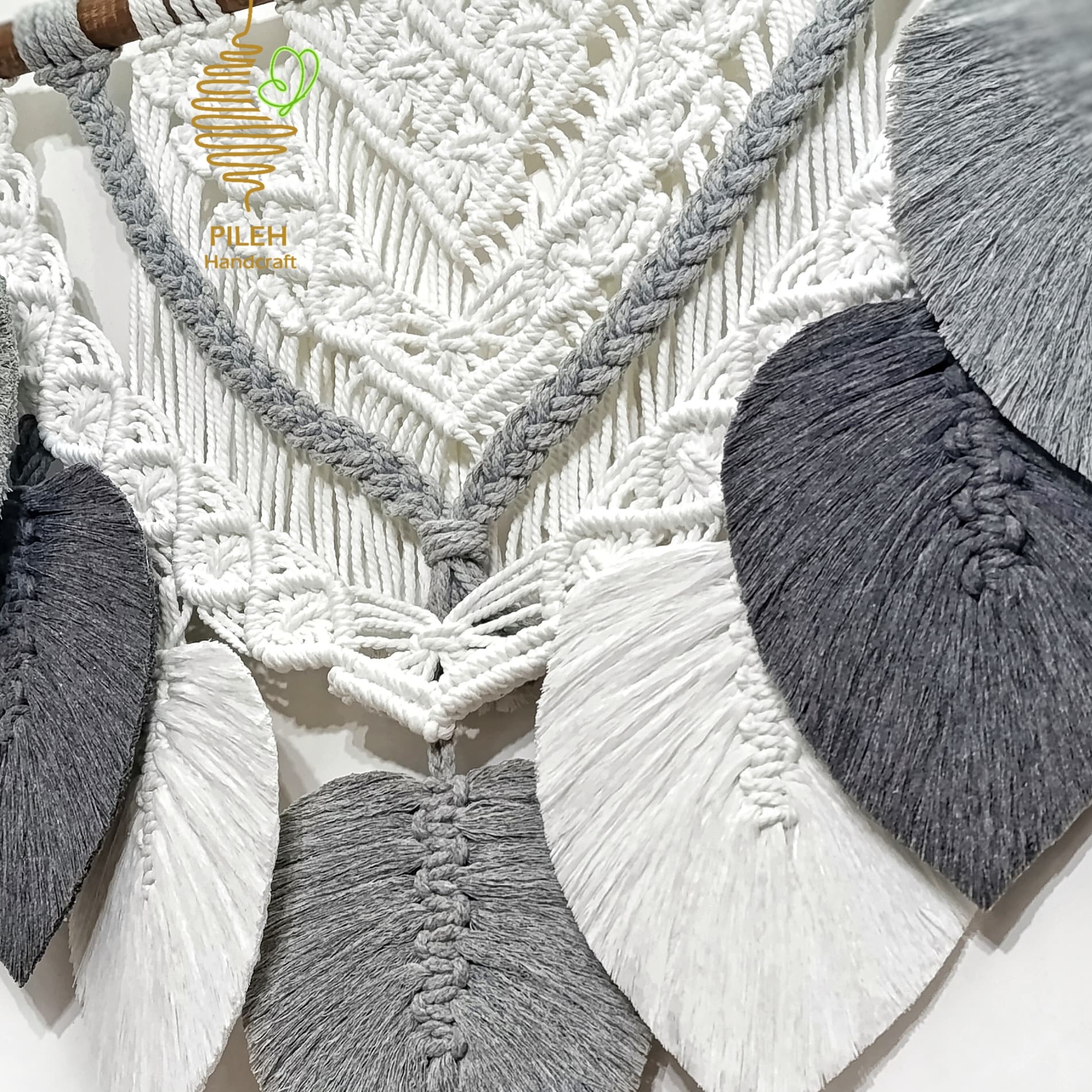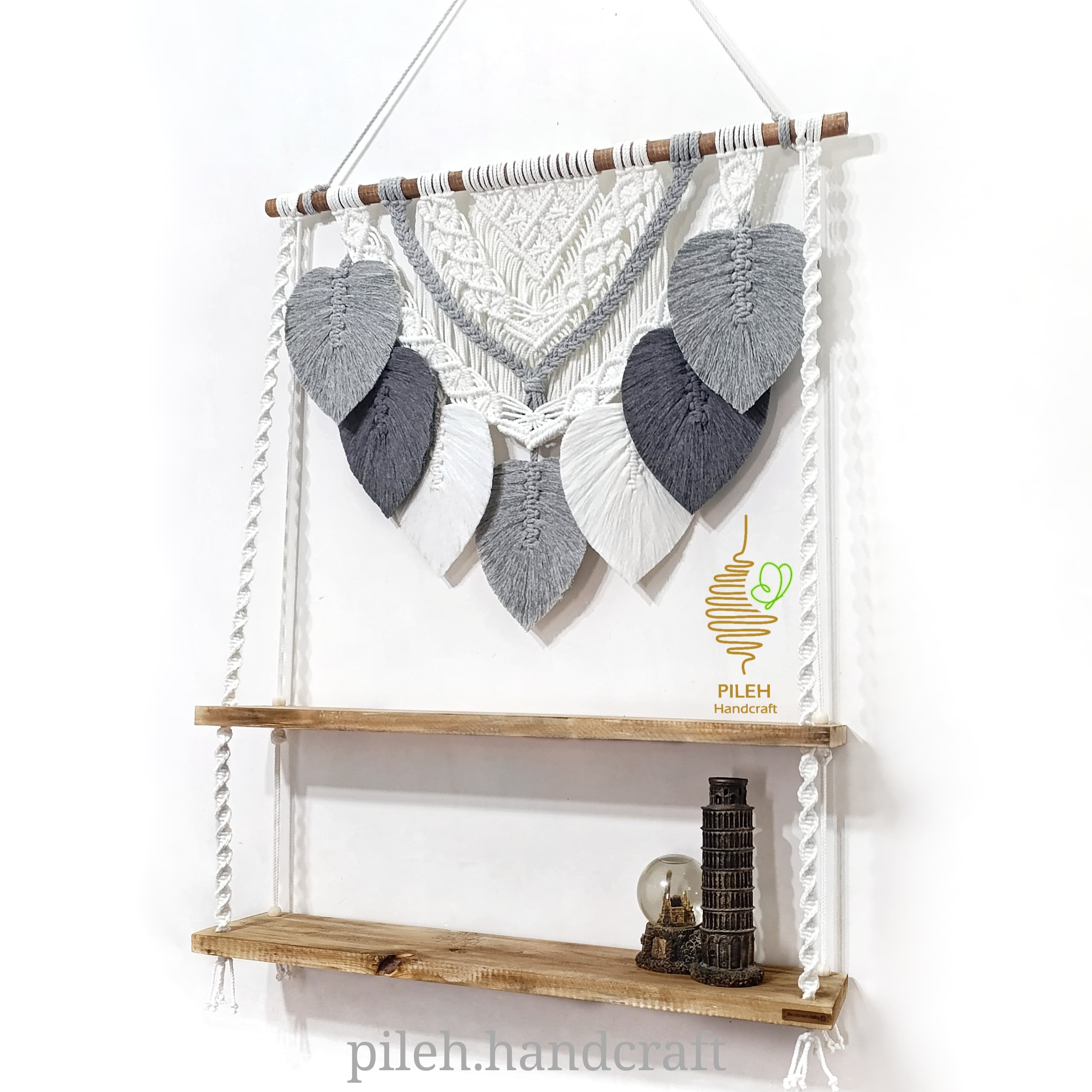 شلف برگ- شلف کتابخانه-شلف دوطبقه-شلف مکرومه خاکستری و سفید ،شلف دکوری مکرومه مبلمونسرا مدل 236619