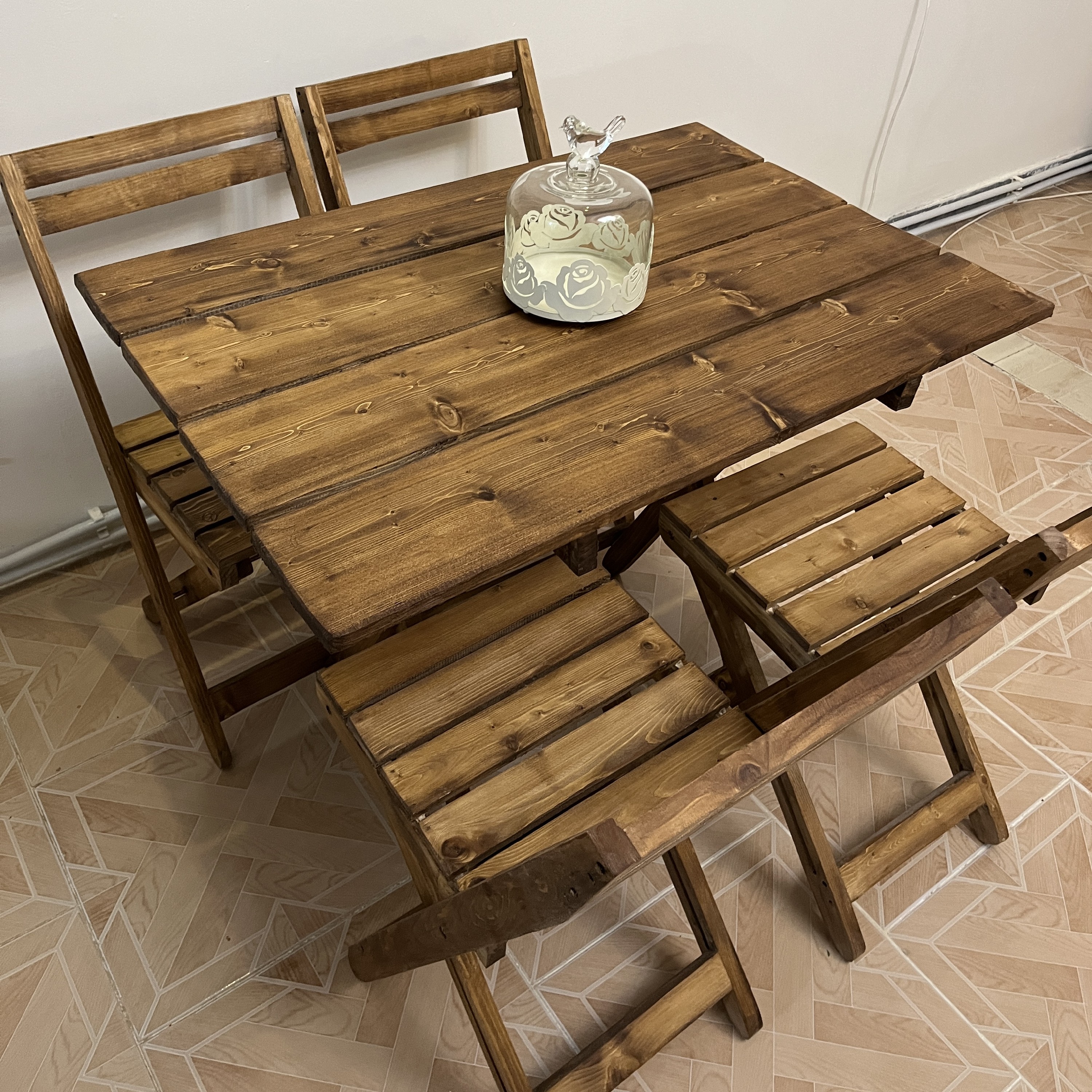 میزو صندلی های تاشو گزینه مناسبی برای استفاده در بالکن، تراس، اشپزخانه های کوچک هستن، مقاومت خوبی دارن و به راحتی باز و بسته میشن، میتونید توی مسافرت هم ازش استفاده کنید،، میز و صندلی تولیدی از تخته درجه یک روسی ساخته شدن و ضخامت دوسانتی دارن
