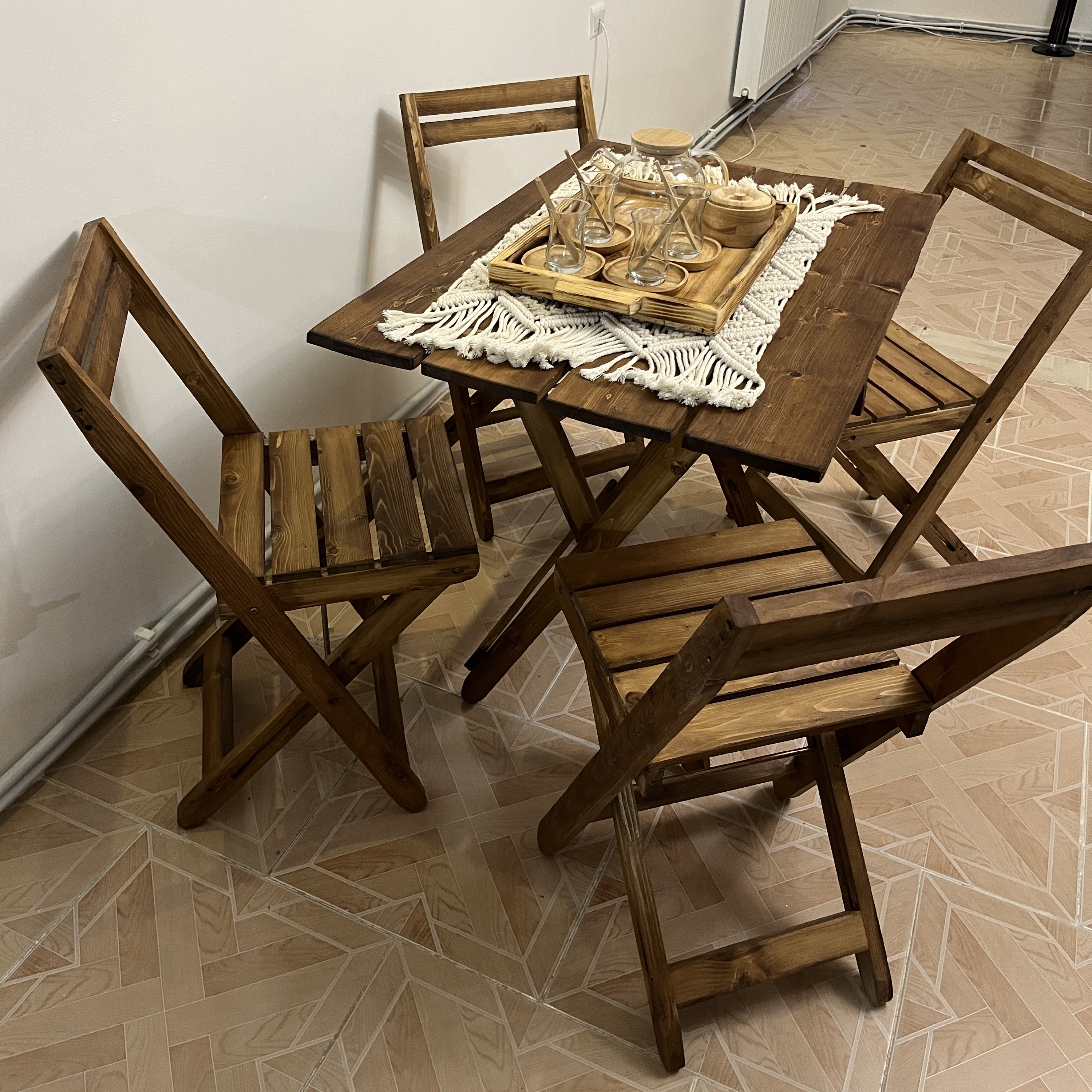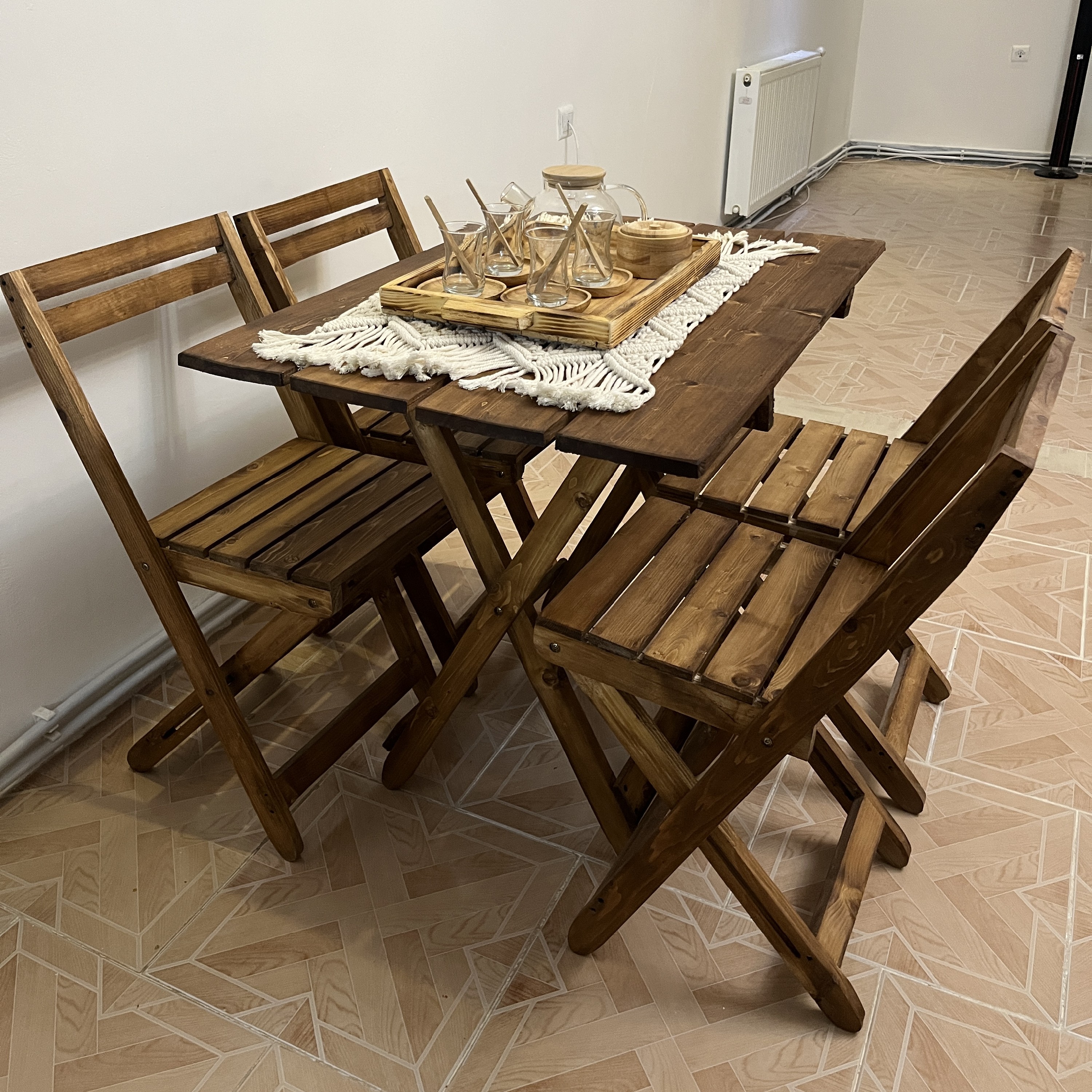 میز صندلی تاشو چهارنفره چوبی مبلمونسرا مدل 212138