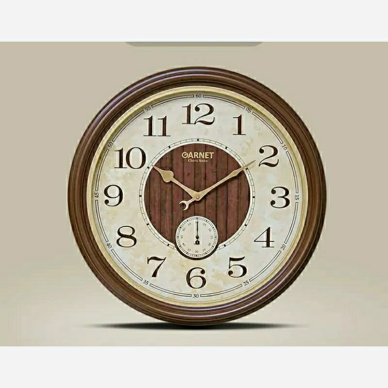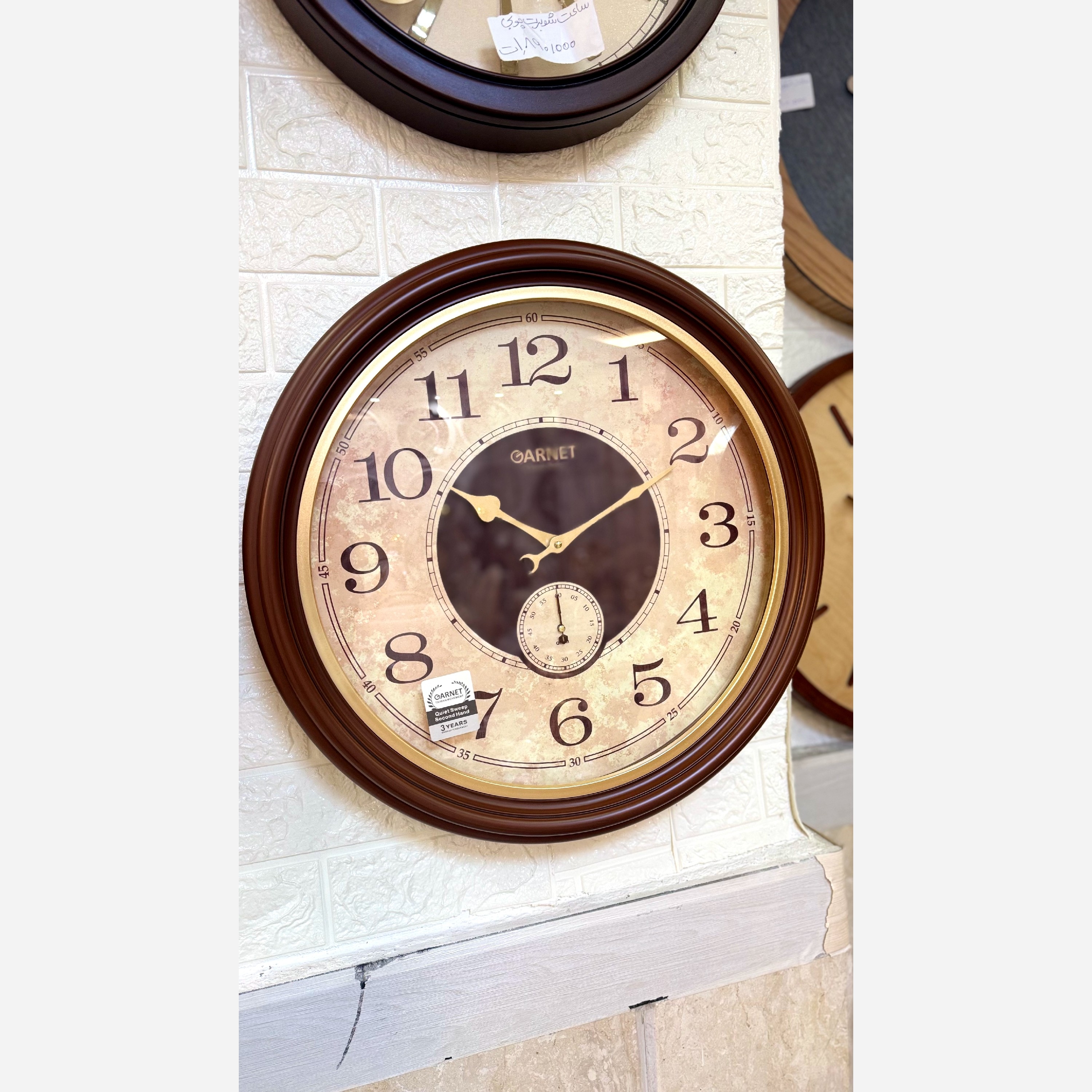 ساعت دیواری شوبرت مدل 3502 گارنت، ساعت دیواری شکیل و بسیار خاص با صفحه کرم و اعداد لاتین، سایز 53 با اعداد و عقربه های قهوه ای