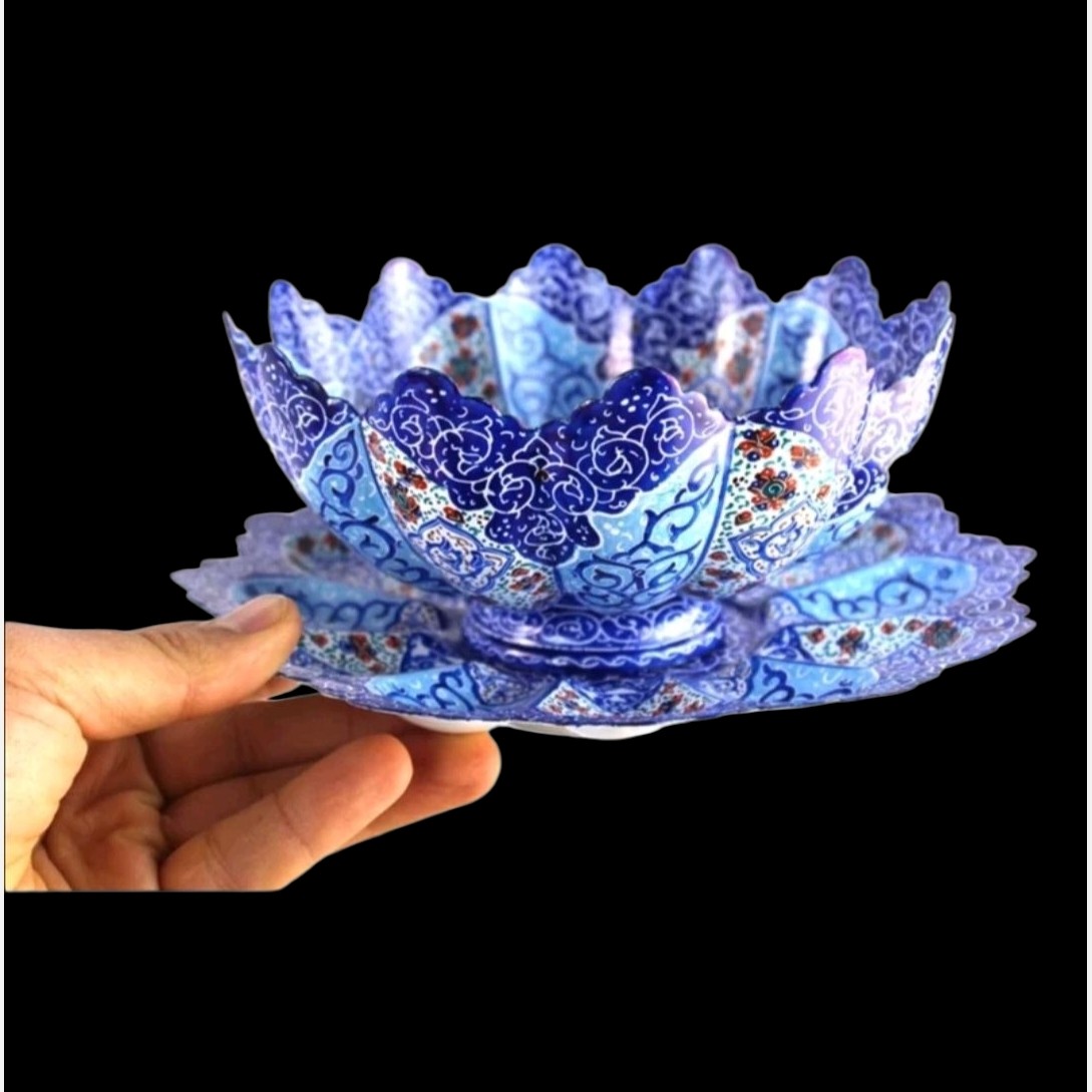 کاسه و بشقاب مسی مدل میناکاری اصفهان اندازه بشقاب 20 و کاسه 16 سانتیمتر
