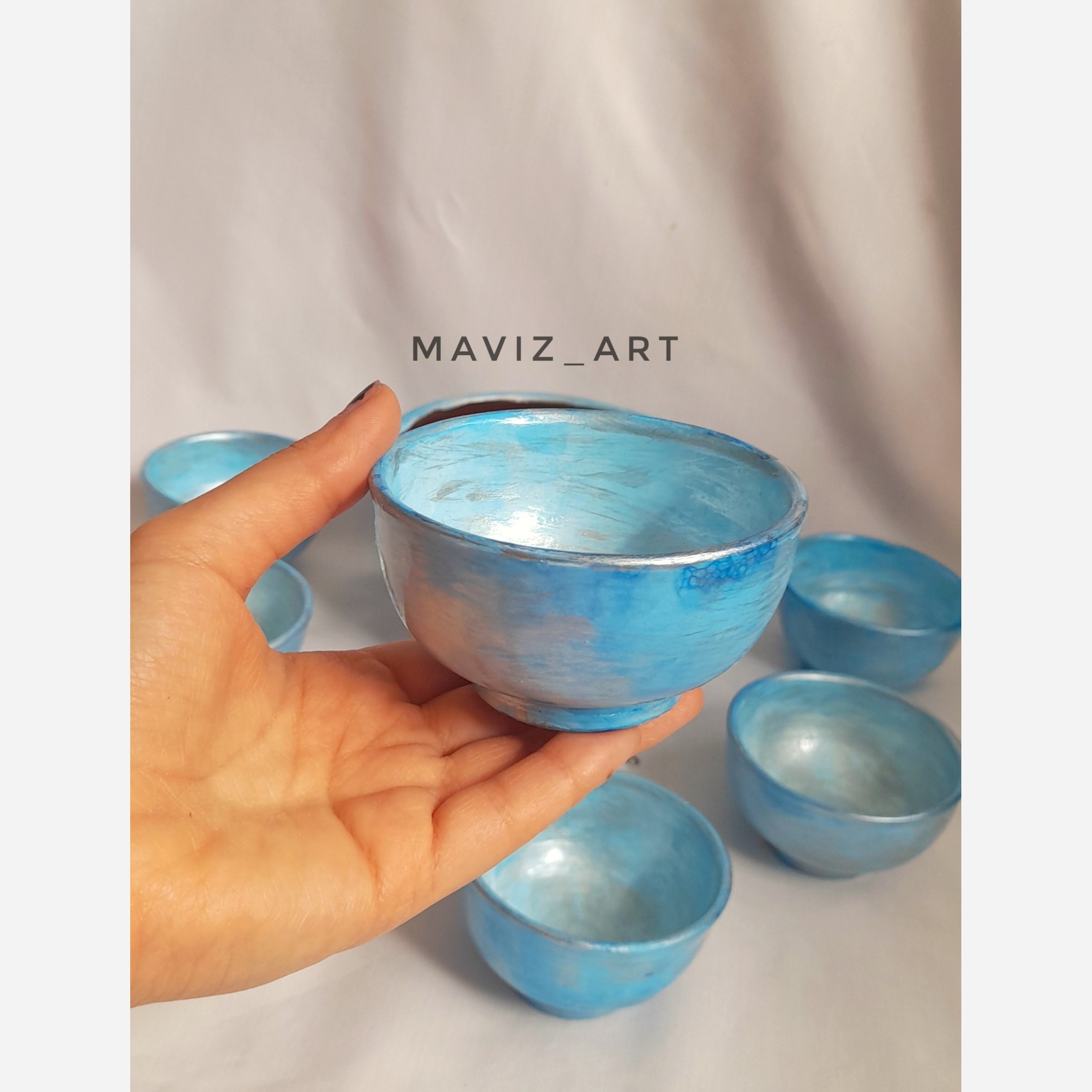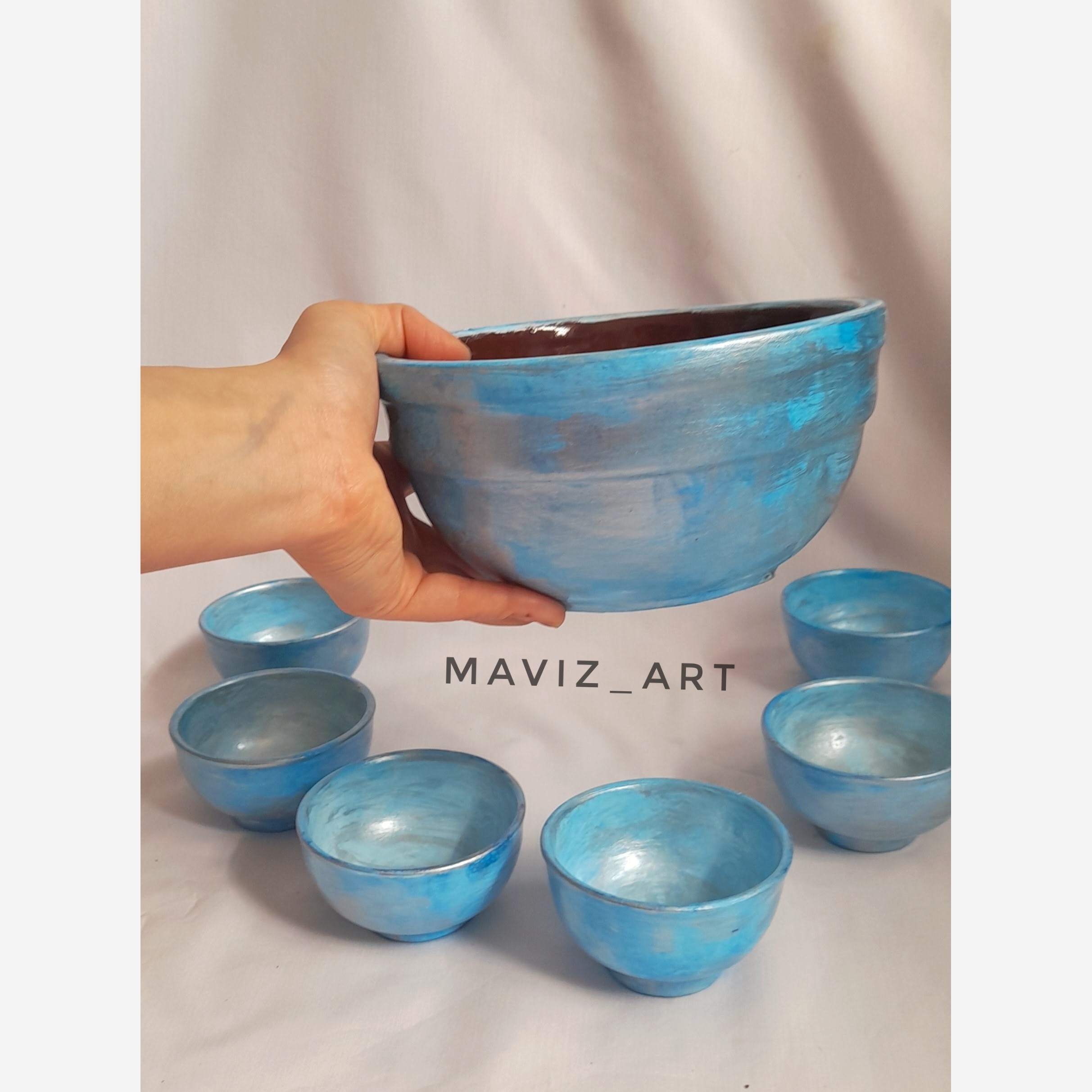 پیاله تنقلات کار شده با دست ضدآب و قابل شستشو مناسب تنقلات خشک و خنک شامل 6عدد پیاله کوچک و یک عدد پیاله بزرگ لعاب دار که مناسب سرو انواع غذاهای سرد و گرم هستش