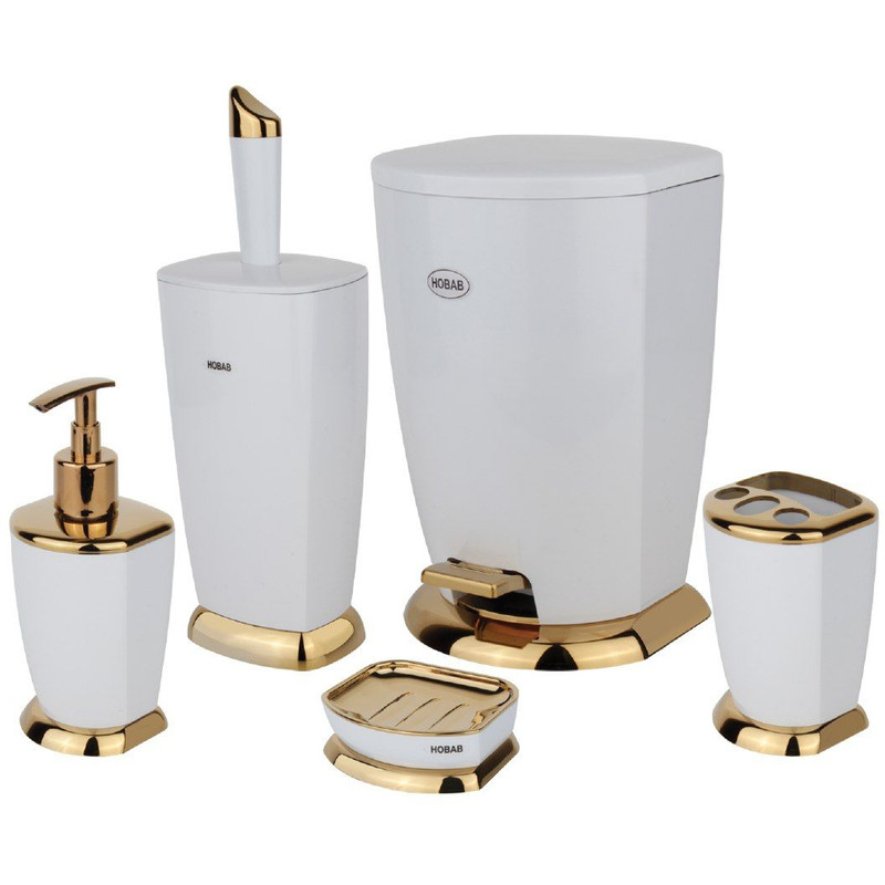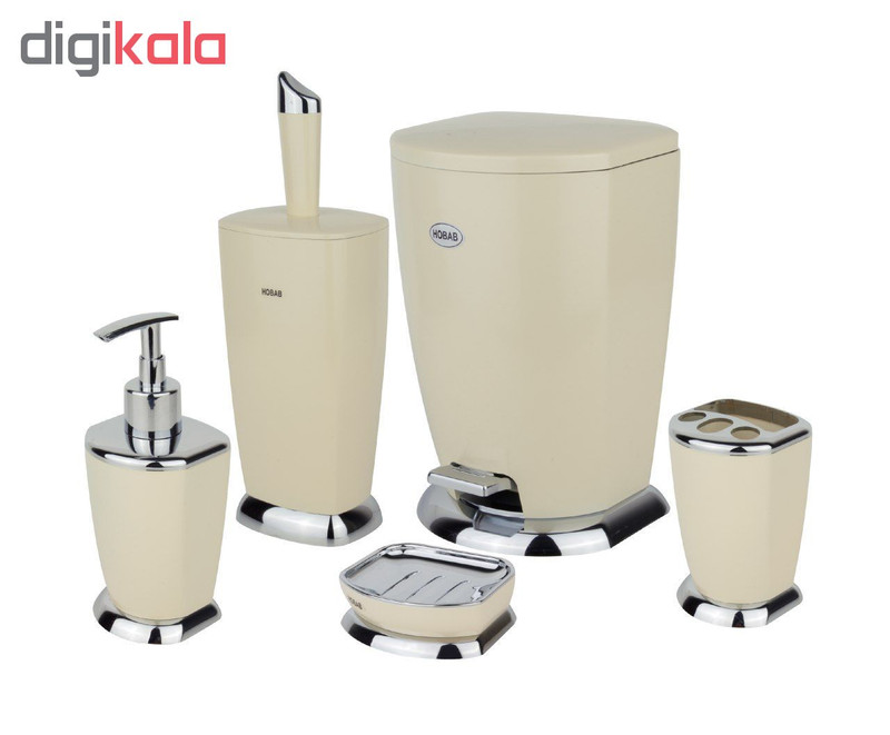 این ست اکسسوری حمام و توالت پنج تکه شامل جای مایع دستشویی ، لیوان بعنوان جای مسواک ،جای صابون ، سطل زباله و برس توالت شور میباشد. جنس این سرویس از پلاستیک ABS است که براحتی قابل شستشو میباشد البته از شستن این سرویس با شوینده های قوی خودداری نمایید. باتوجه به جنس ، طراحی زیبا و قیمت مناسب این سرویس ، آنرا جز سرویسهای لوکس و پرطرفدار نموده است. این کالا براحتی با هر محیط و رنگی هماهنگ می شود و شما میتوانید با قراردادن گل یا شمعهای رنگی و معطر زیبایی آنرا دوچندان نمایید.