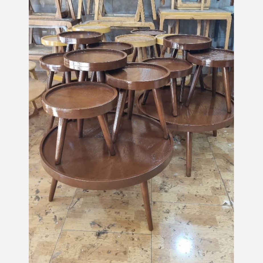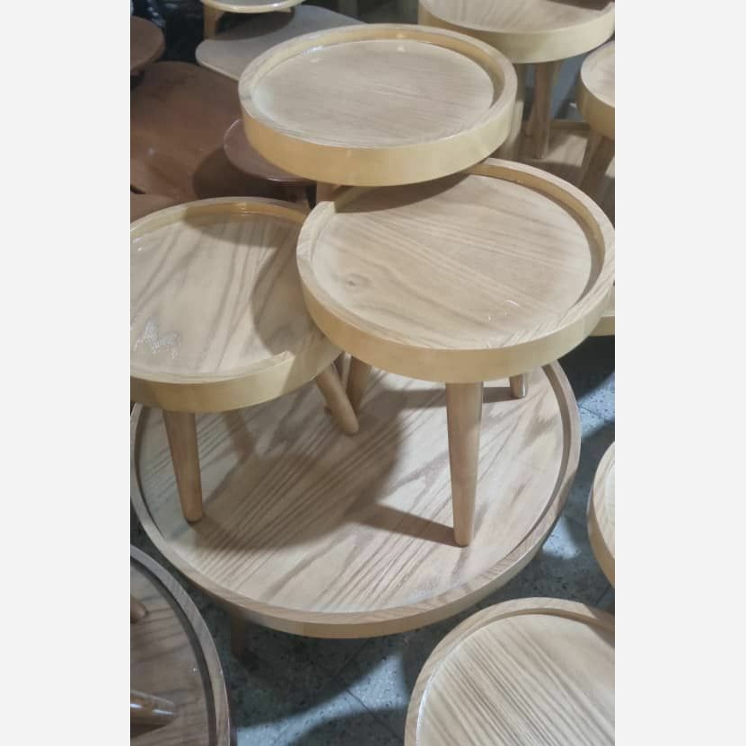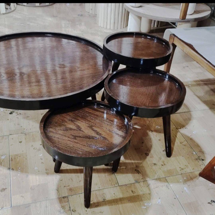 میز و جلو مبلی عسلی گرد لبه دار میز به همراه 3 عدد عسلی صفحه MDF روکش طبیعی راش پایه چوب جنگلی شمال در رنگنبدی عسلی و خودرنگ قابل سفارش در رنگبندی دلخواه
