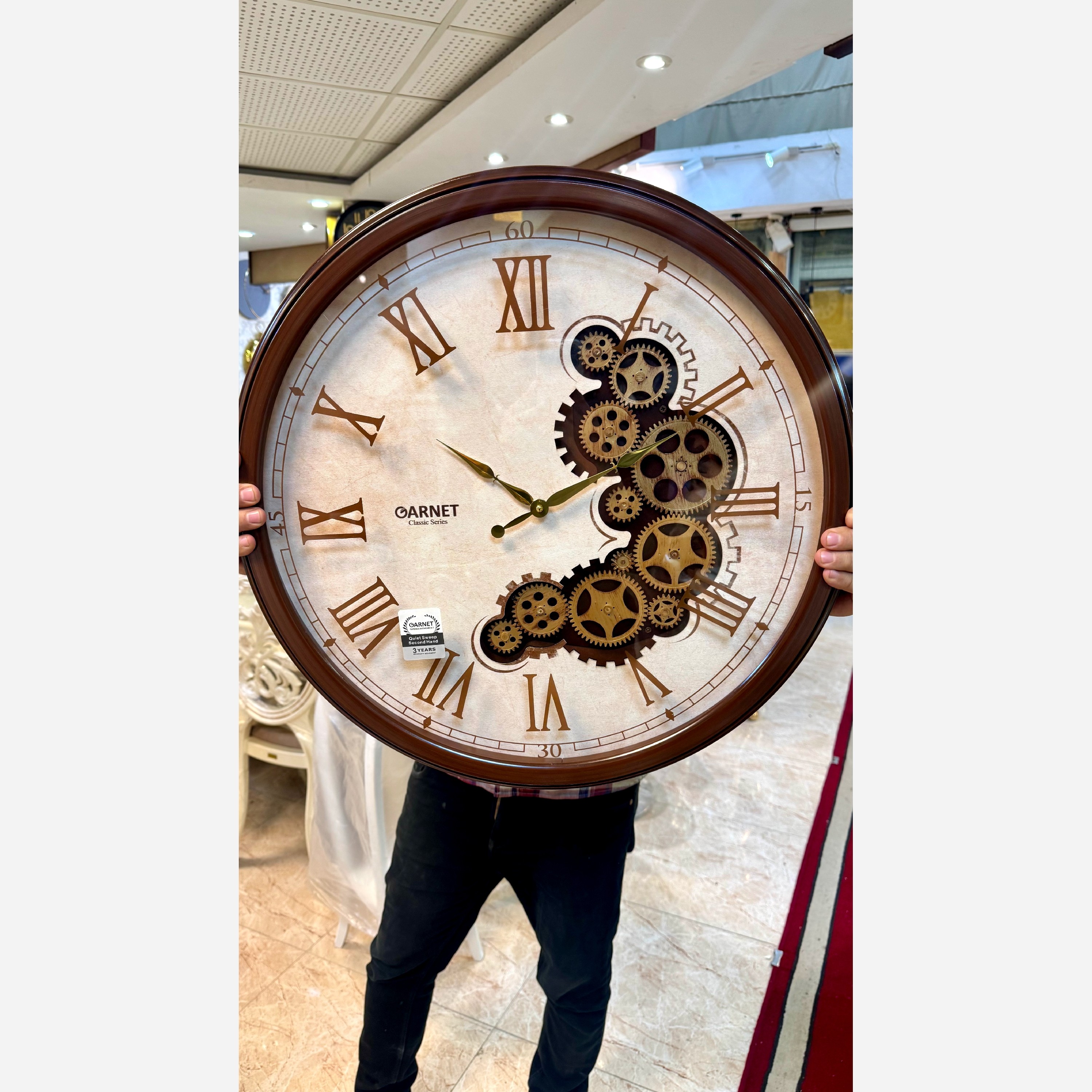 ساعت دیواری شوبرت مدل 5258 گارنت رنگ قهوه ای ساعت دیواری شوبرت مدل 5258 گارنت، انتخابی منحصر به فرد برای دیواری های خالی دکور شما است. این ساعت با طراحی چرخدنده دارش نهتنها می تواند زمان را به شما نشان دهد، بلکه به یک اثر هنری و اکسسوری دیواری تزیینی چشمگیر در فضای شما تبدیل میشود. صفحه قهوهای و اعداد چاپی روی شیشه، ظاهری زیبا و کلاسیک به آن میبخشند. با سایز 60 و فونت رومی جذاب، این ساعت به راحتی در ذهن هر مخاطبی نقش می بندد. مشخصات فنی ساعت جنس پلاستیک A.B.S بدنه ساعت موتور آرام گرد تایوان شوبرت رنگ قهوه ای چاپ مستقیم اعداد روی شیشه دارای چرخ دنده های متحرک