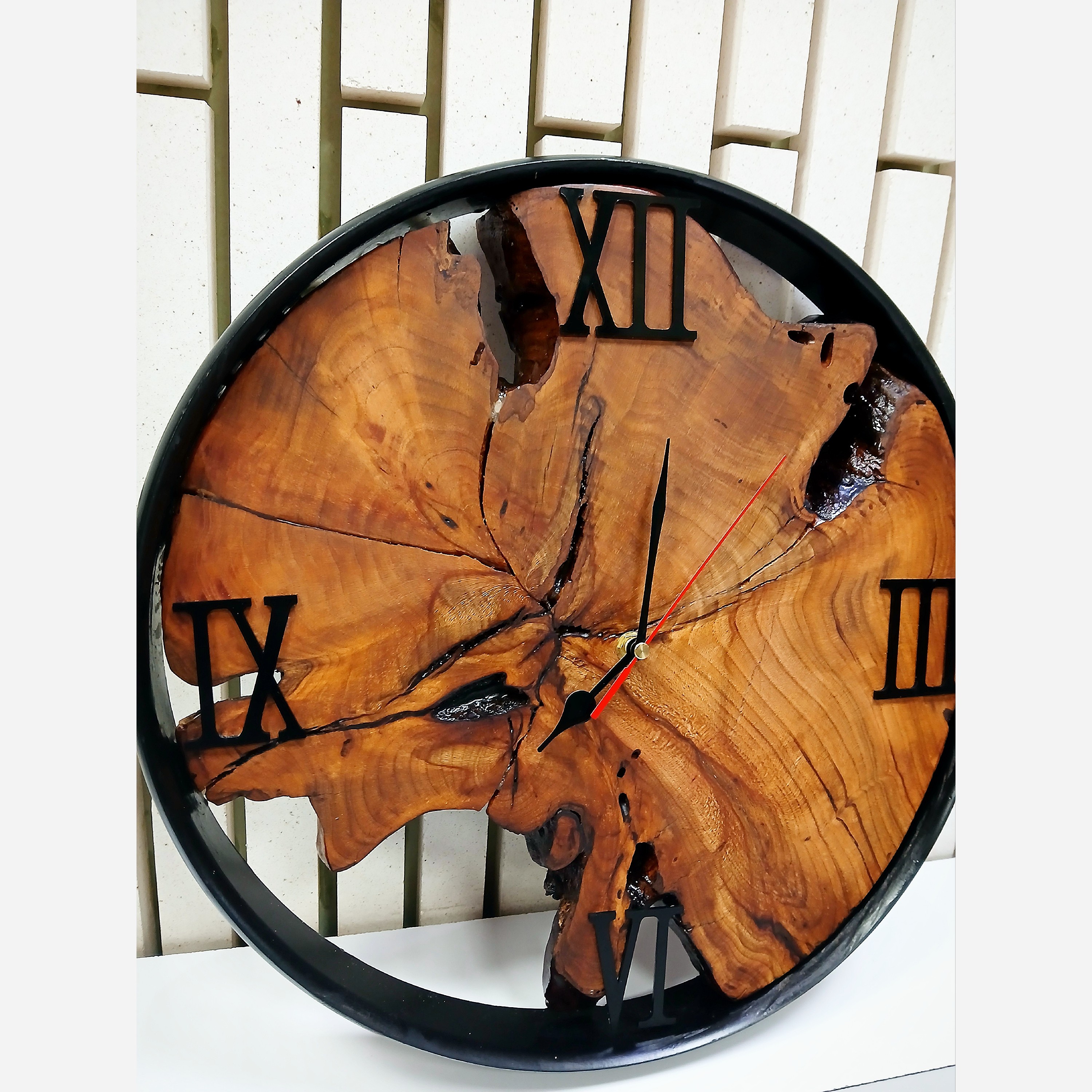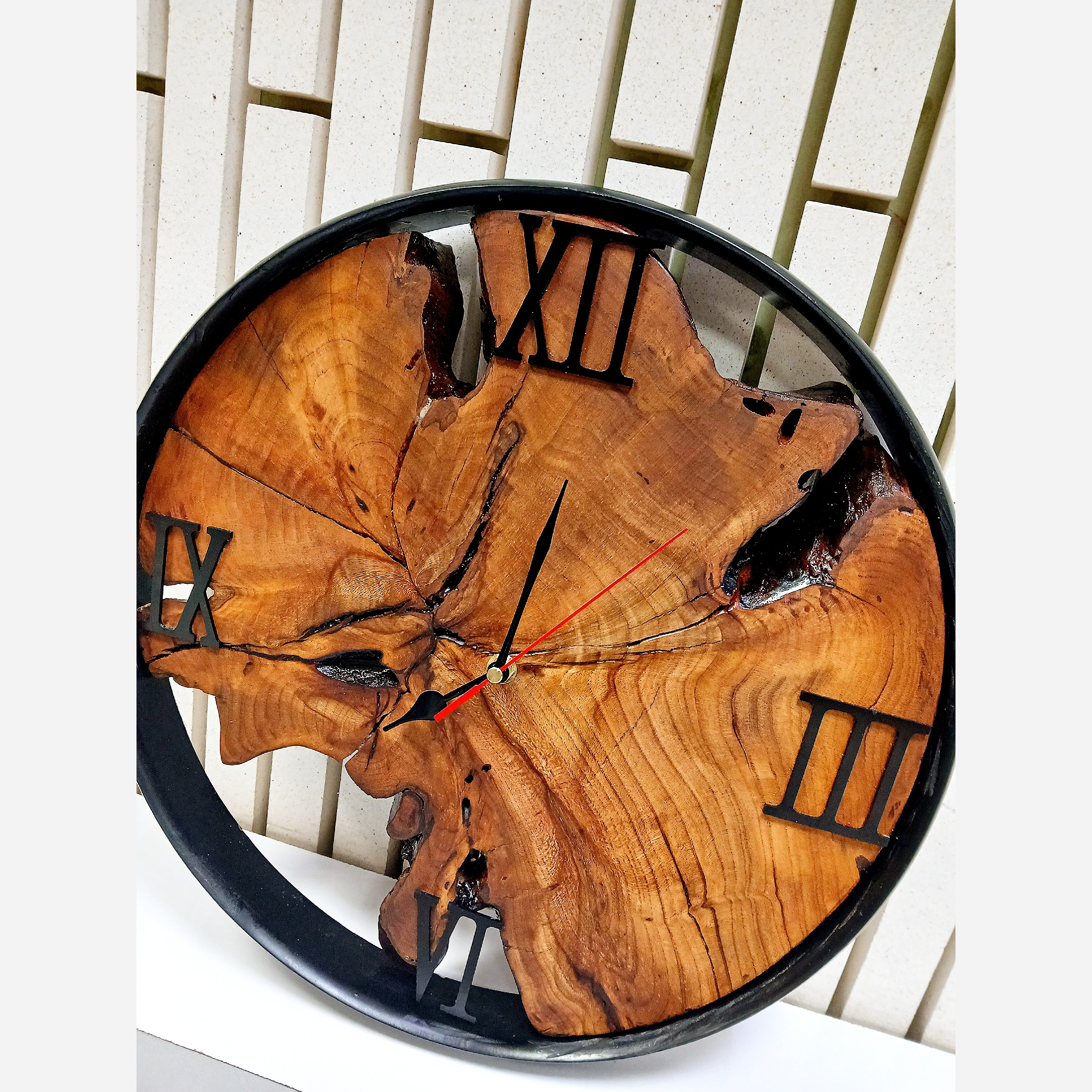 ساعت رستیک چوب طبیعی بادام متور آرامگرد درجه یک عایق شده با روغن گیاهی کاملا مقاوم و جاودانه شده کار بسیار شیک برای متفاوت کردن خانه شما