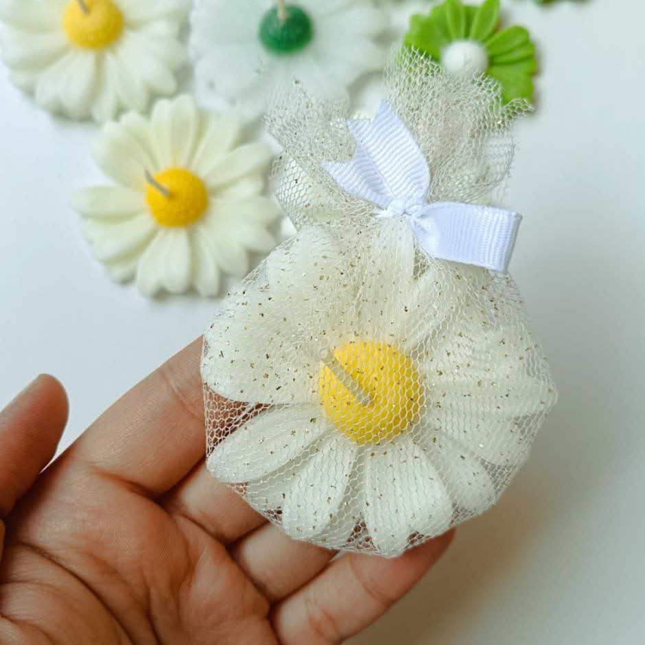 گیفت شمع بابونه نذر مناسب برای مولودی ها و روضه ها💚😊 شمع و تور بسته بندی با رنگ و سلیقه شما عزیزان ساخته و تقدیمتون میشه در 24طیف رنگی