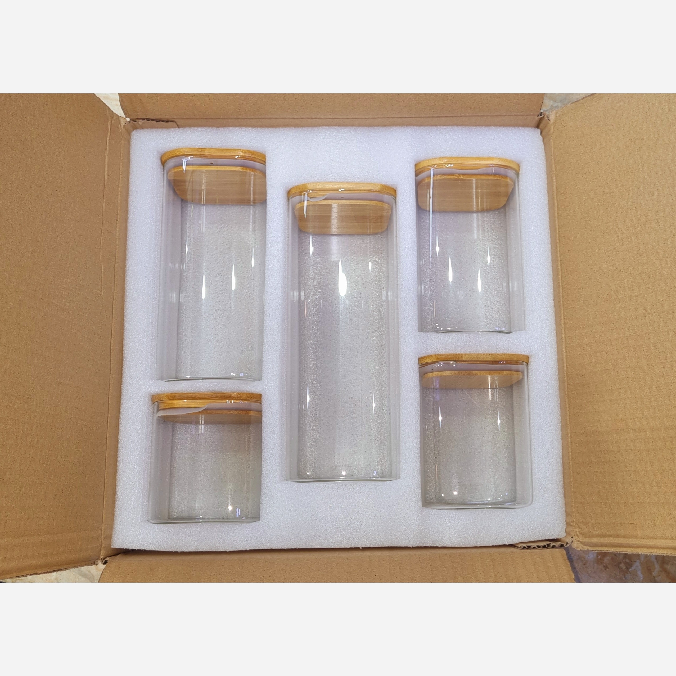 بانکه حبوبات پیرکس دارای در بامبو در 5 سایز به ترتیب 25 و 20 و 15 و 12 و 10 سانت به قطر 10 سانت میباشد ساخت چین است