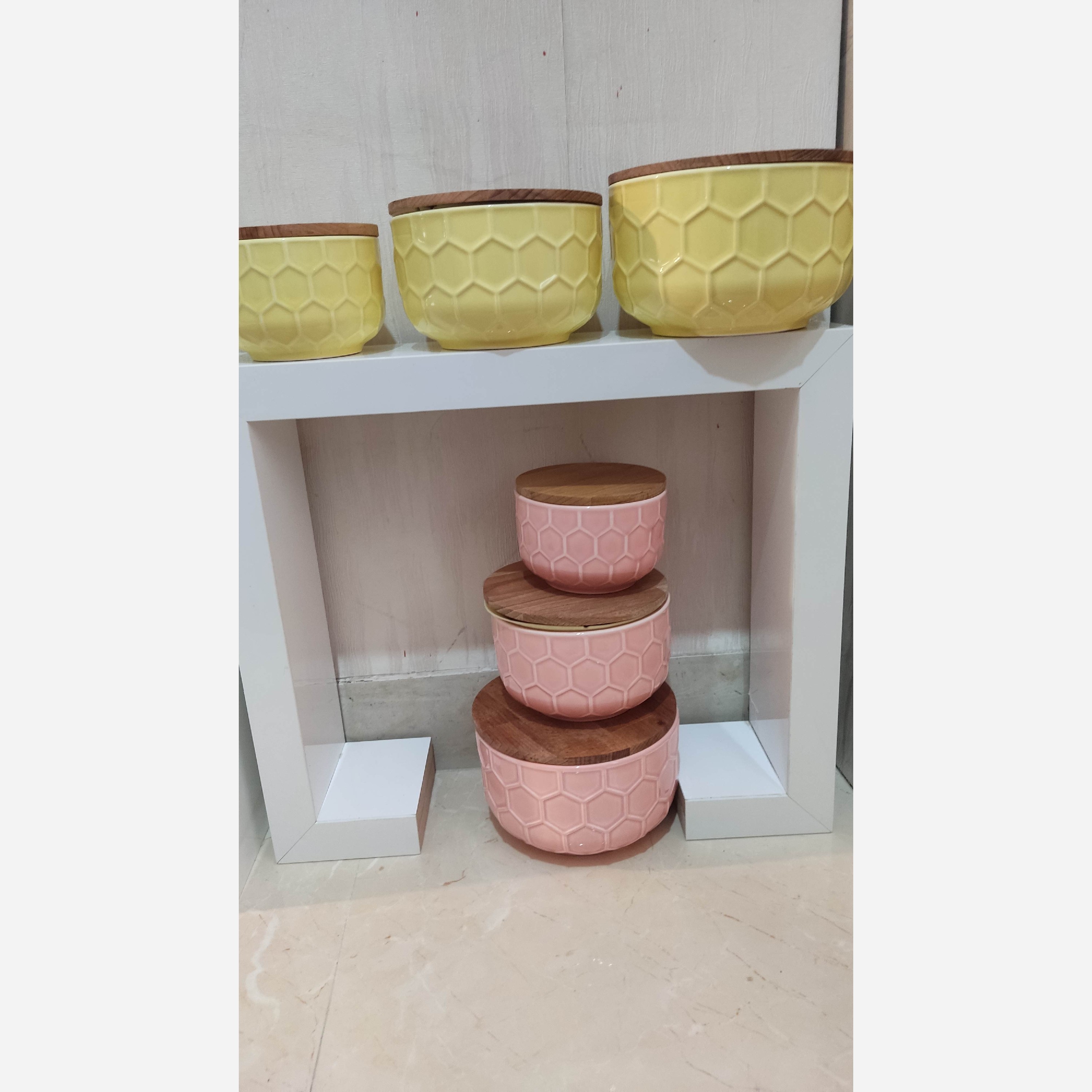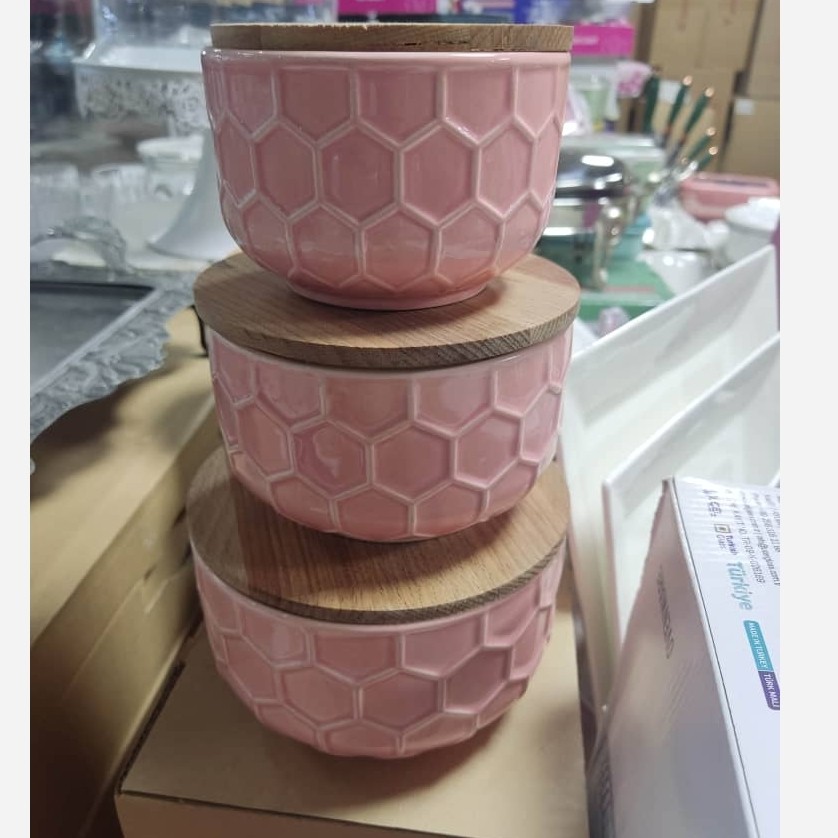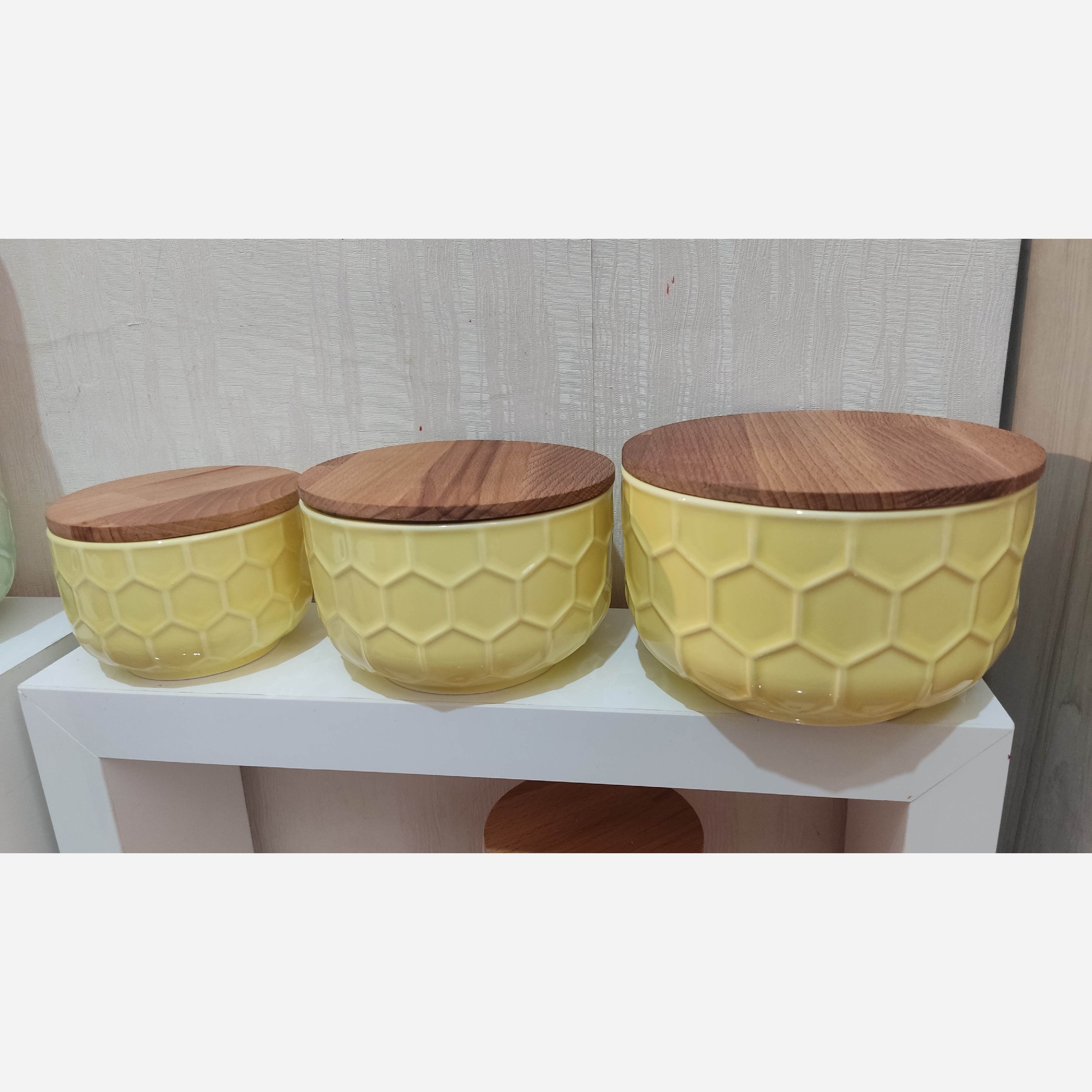 ظروف نگهدارنده سرامیکی، درب بامبو، مدل لونه زنبوری، مورد استفاده نگهداری غذا و میوه .... مارکMGS
