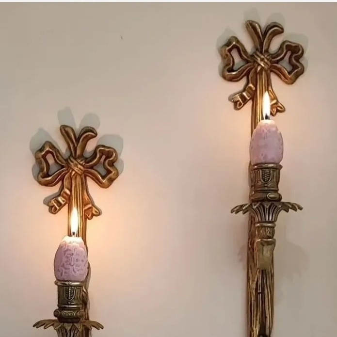 جا شمعی دیوار کوب برنز طرح پاپیون شمعدان دیواری و اپلیک برنز نوعی دیوارکوب دکوری آنتیک تزئيني است که دارای یک یا چند شاخه روشنایی به صورت جاشمعی یا لامپ است اين وسيله لوکس و چشم نواز که در دکوراسيون داخلي کاربرد قابل توجهي دارد، شکوه فضا را دو چندان نموده و توجه هر بيننده اي را به خود جلب مي نمايد. با توجه به اينکه يکي از اصول طراحي دکوراسيون به سبک کلاسيک، رعايت تقارن و به کارگيری لوازم به صورت زوج است، استفاده از جفت اپليک برنز سه شاخه با اين سبک طراحي کاملا هماهنگ بوده و تکميل کننده دکوراسيون داخلي خواهد بود تک و جفت در رنگبندی و تعداد شاخه و ابعاد و مدل متغییر قابل سفارش
