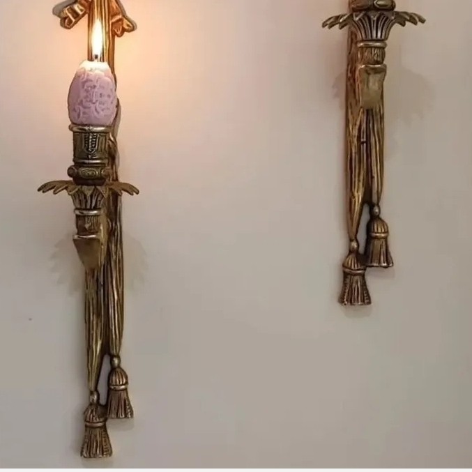 آباژور شمعدان دیوار کوب جا شمعی دیواری شمعدانی دیوارکوب برنز اپلیک برنزی آنتیک پتینه مبلمونسرا مدل 233414