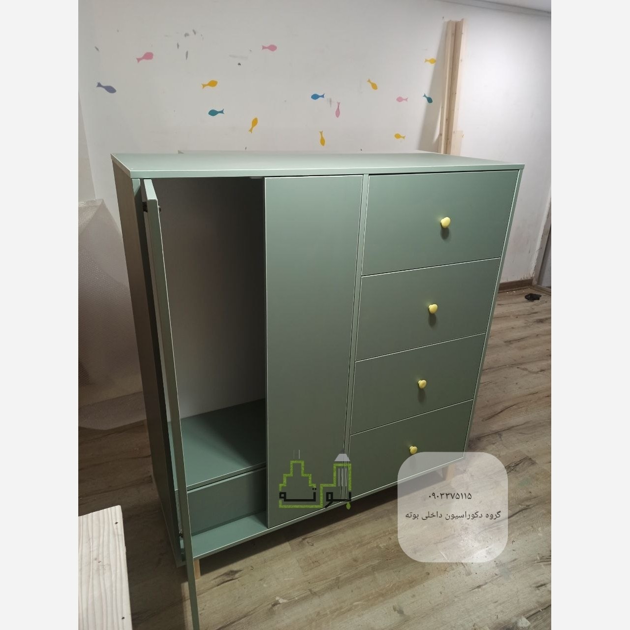 کمد و باکس از جنس ام دی اف است تخت ساخته شده توسط گروه بوته در رشت است. ابعلد تخت 130در 70