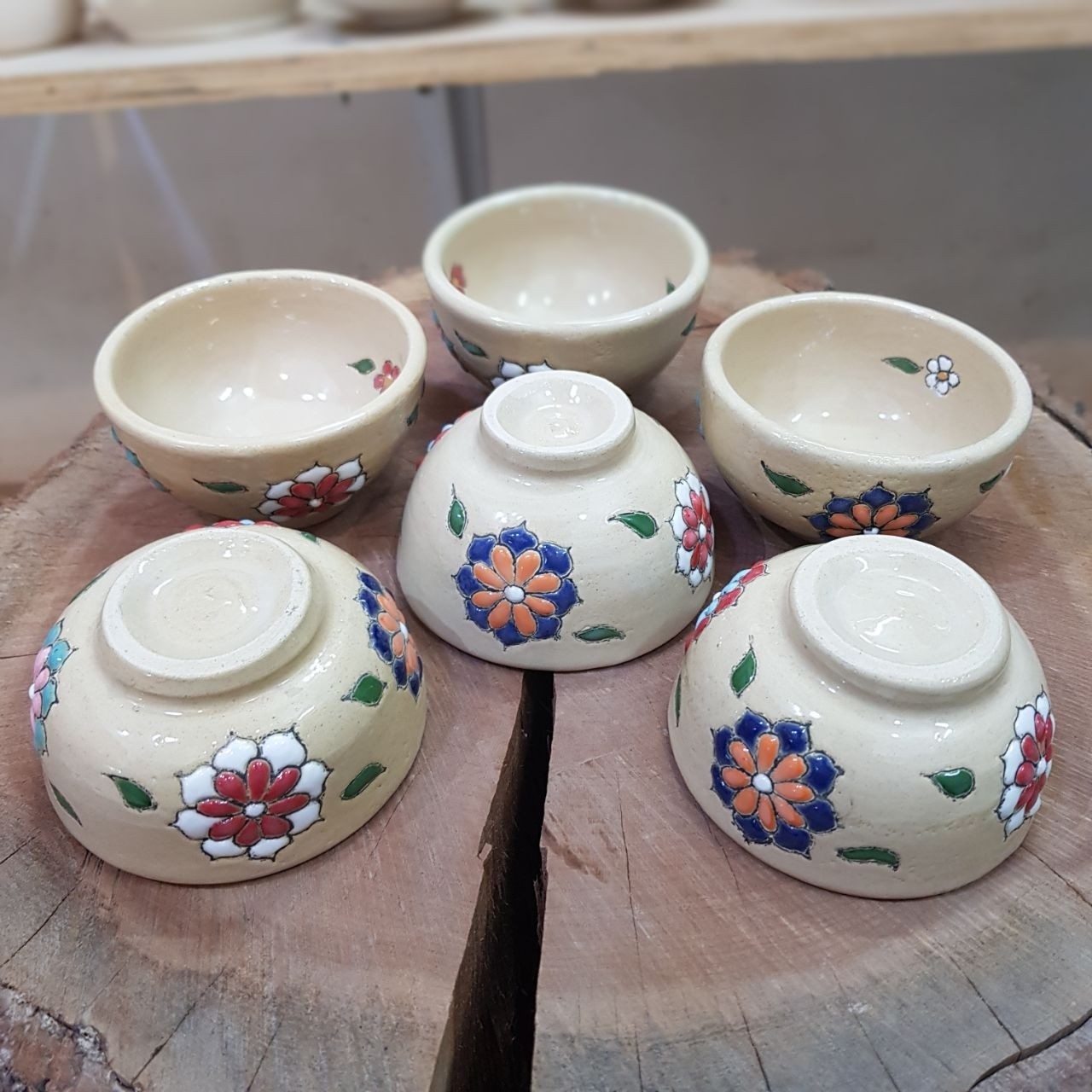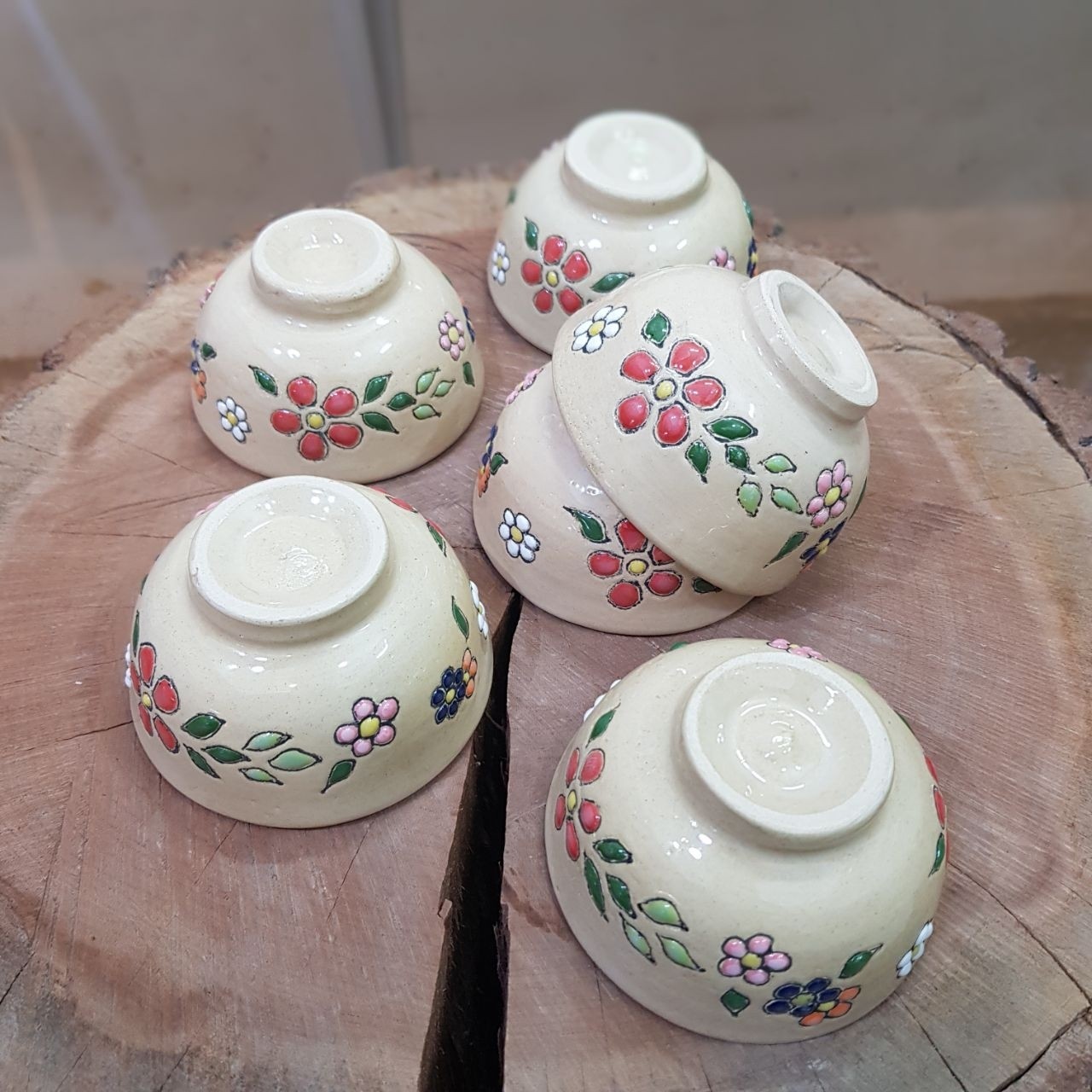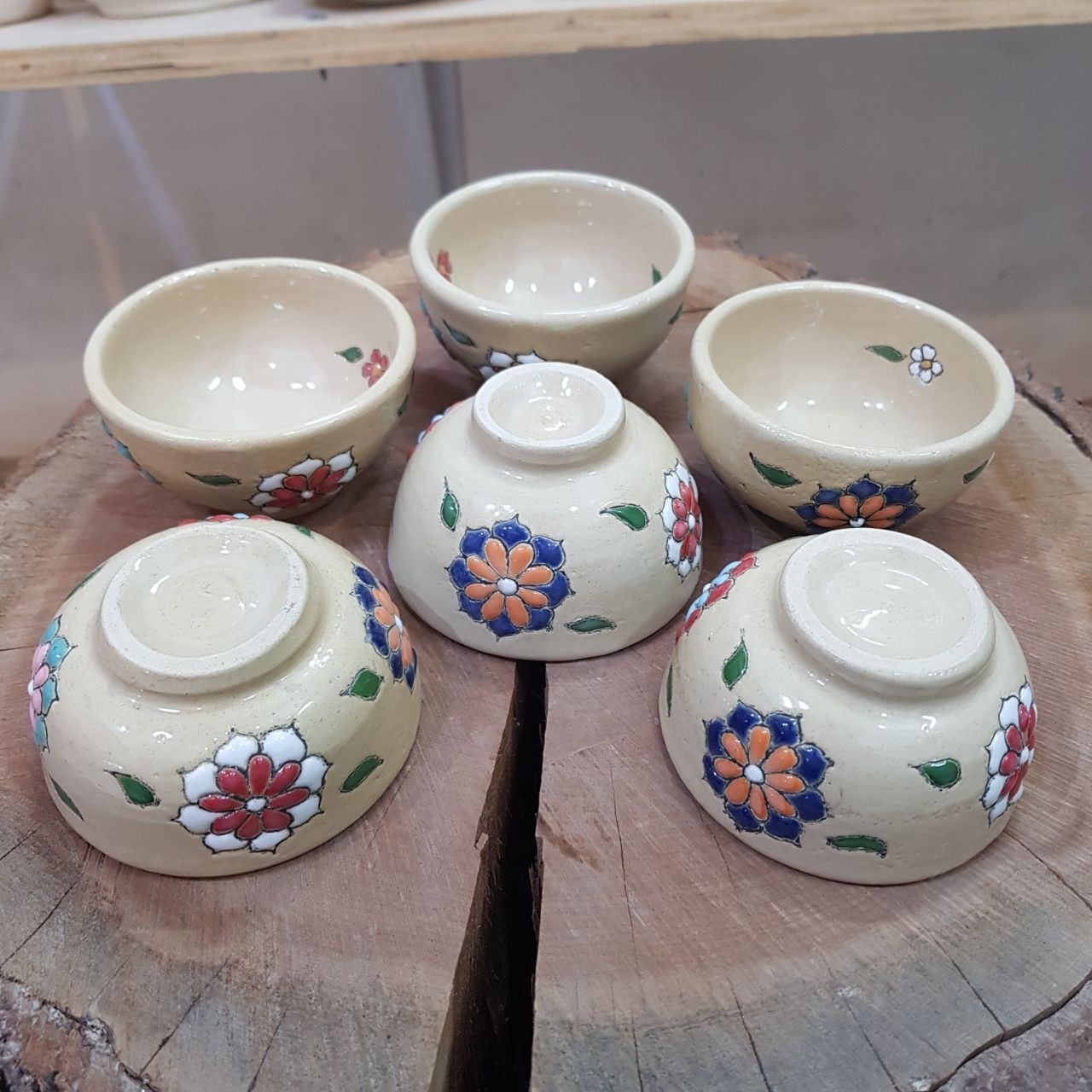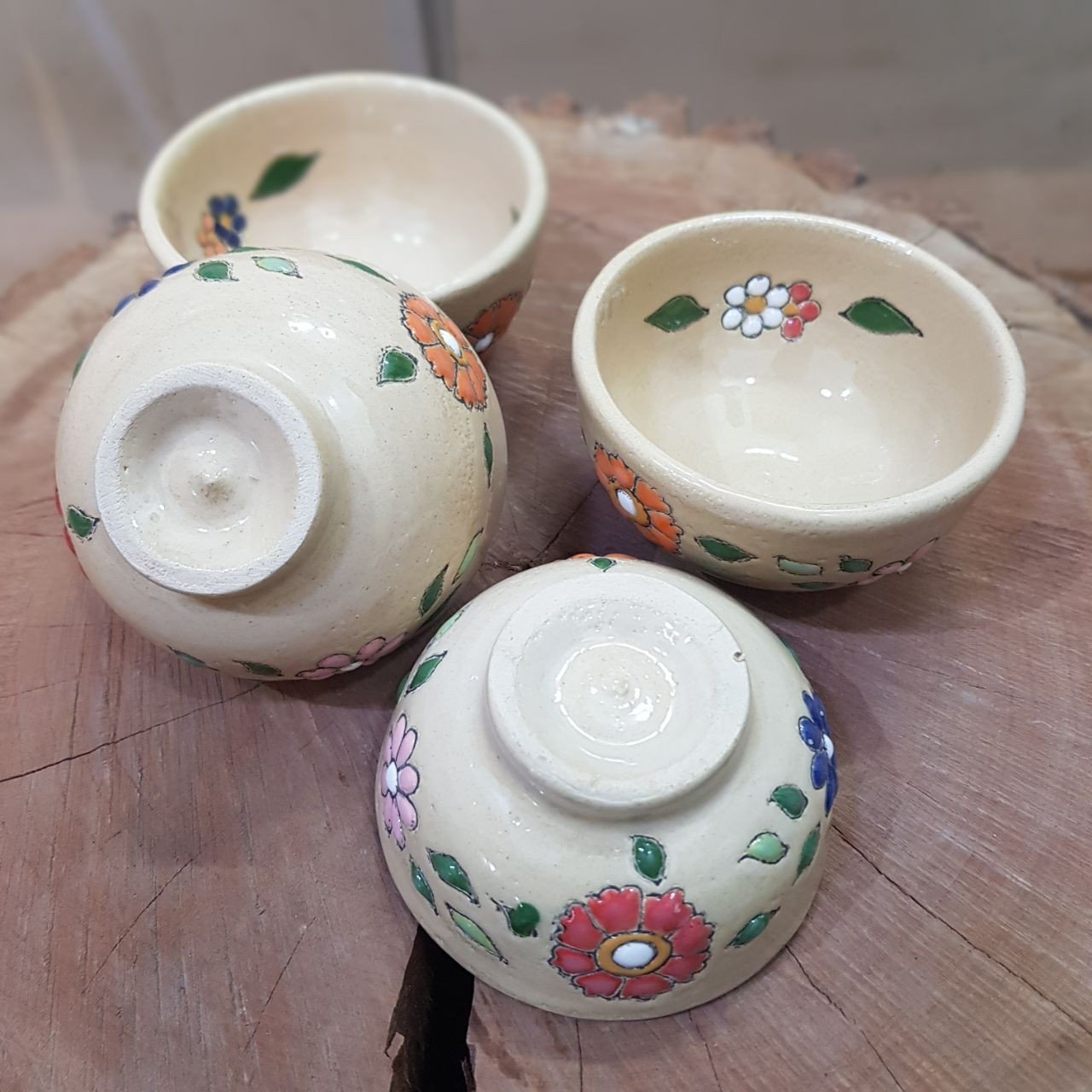 پیاله های ترشی خوری سفالی میناکاری هفت رنگ لعابخورده و درکوره پخته شده، قابل استفاده روزانه