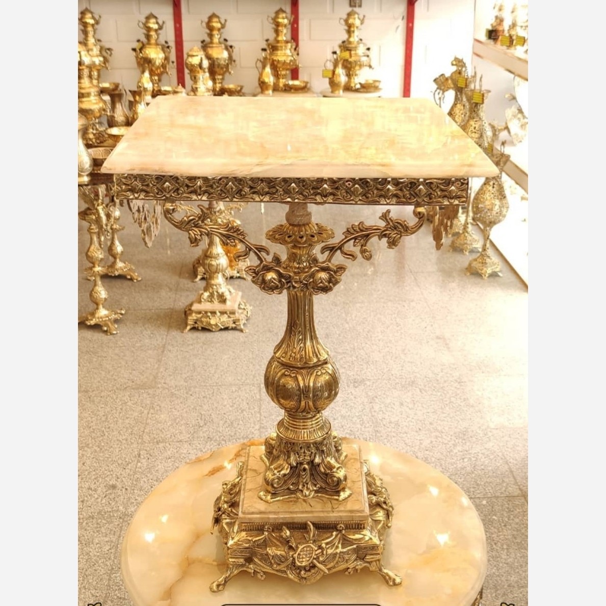 گل میز خاطره برنز میز تلفن کنار سالنی برنز پایه سنگی مربع برنزی سنگین قالب اصلی مبلمونسرا مدل 224693