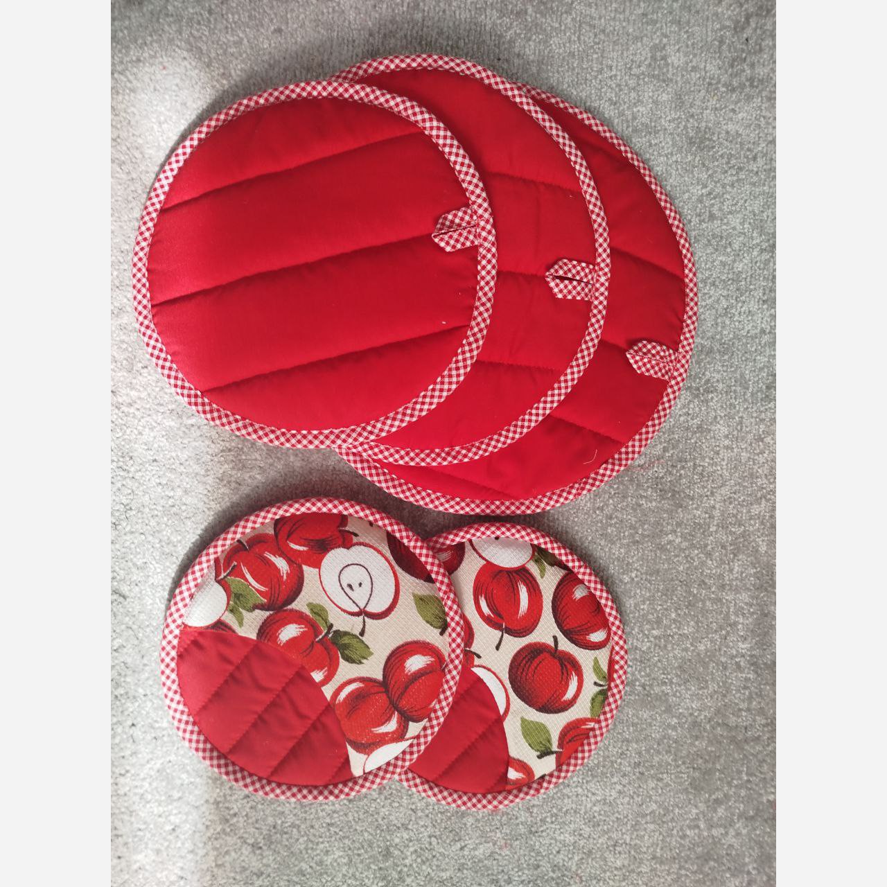 ست دمکنی درسه سایز مختلف و دوعدددستگیره دارای لایه پشم شیشه برای جلوگیری ازعرق کردن طرح و رنگ و پارچه به سلیقه شماست 🥰