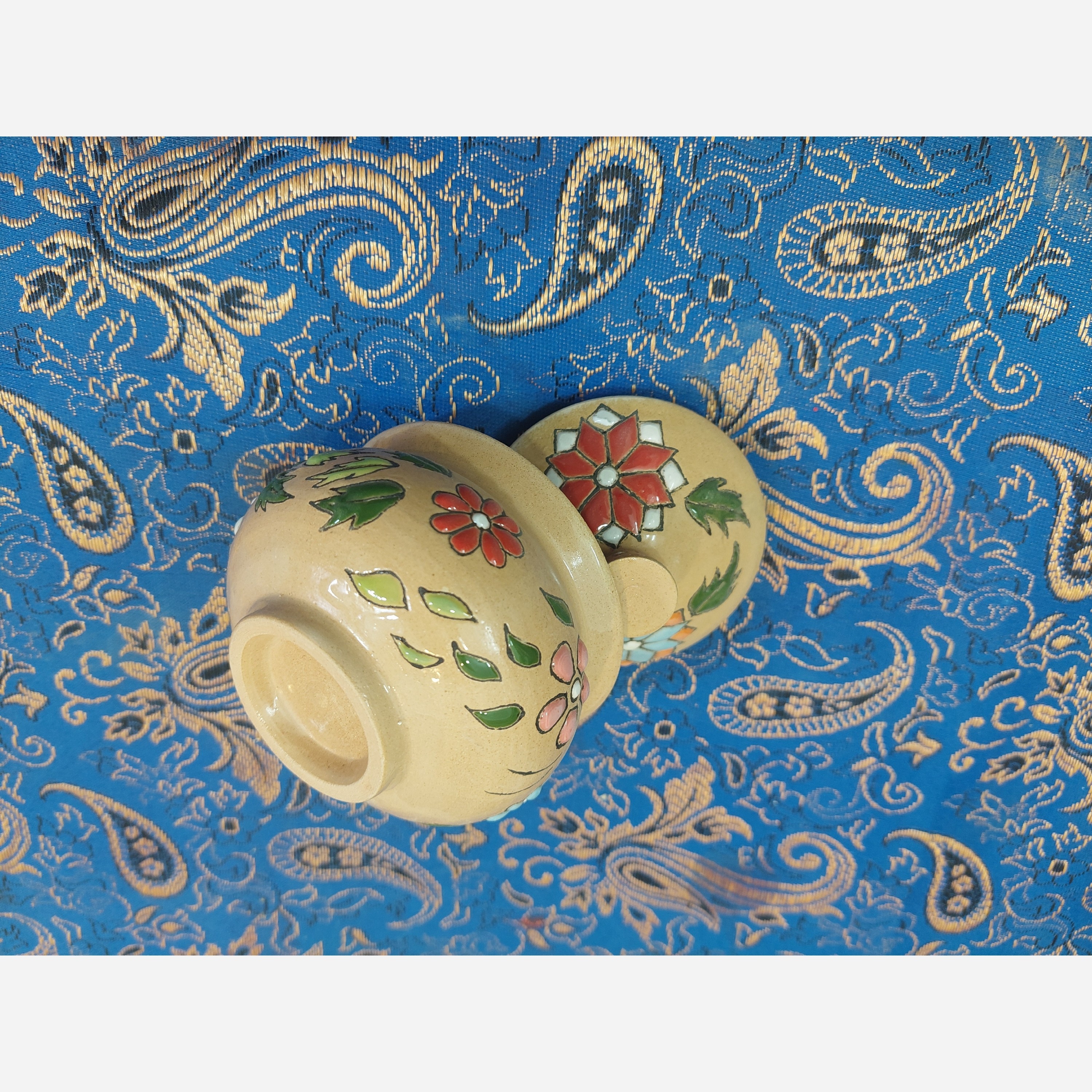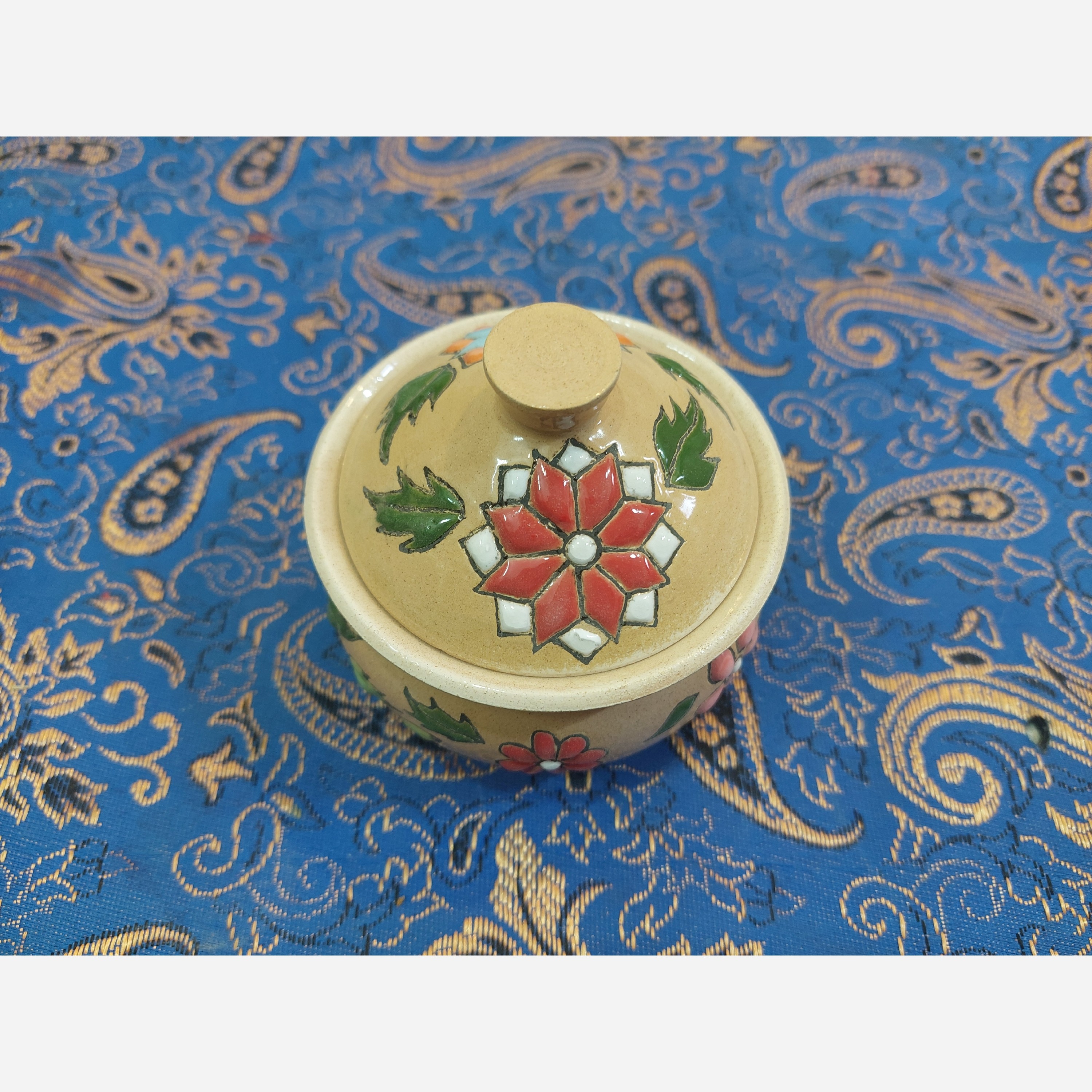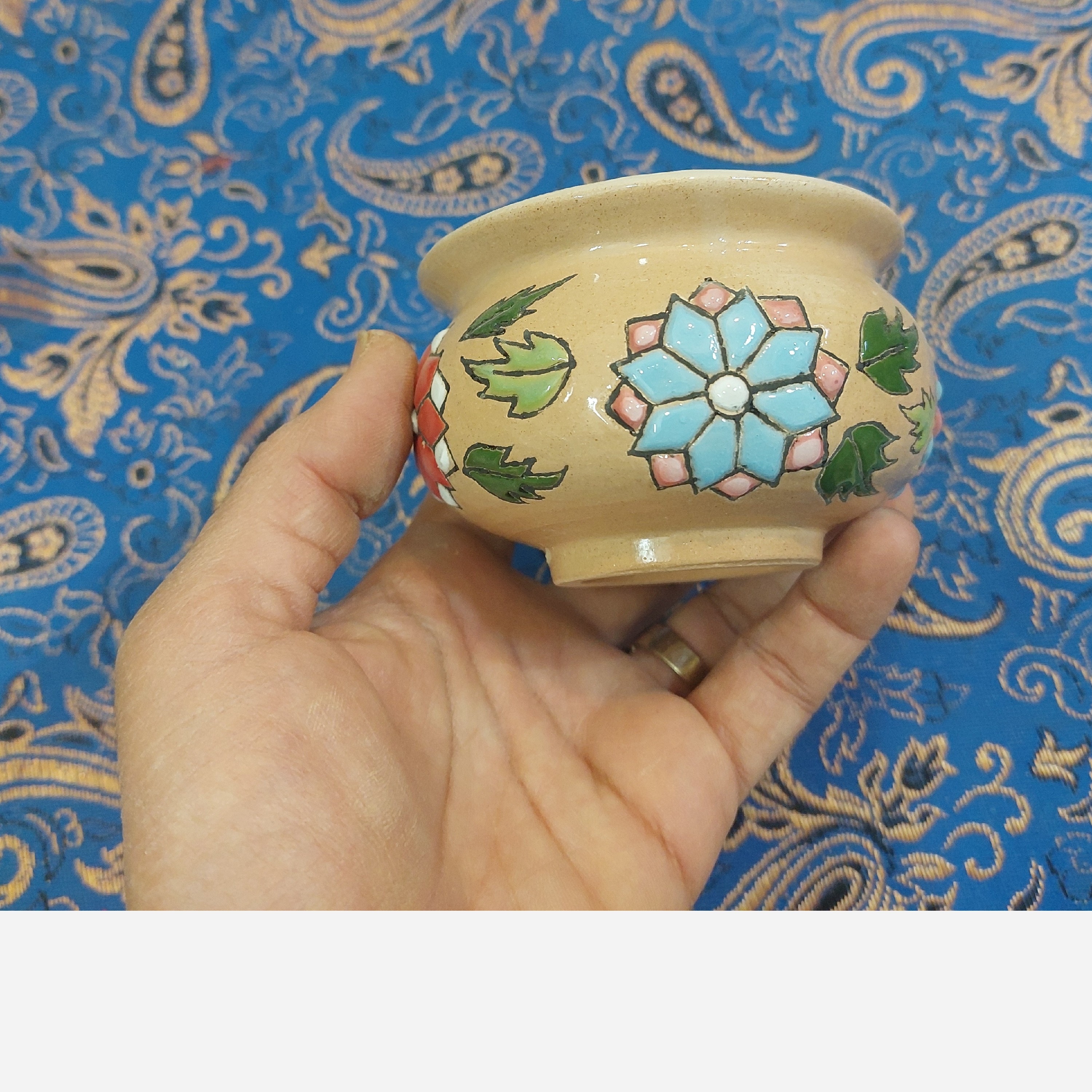 قندان متوسط سفالی دستساز ونقاشی شده طرح گلهای برجسته، هفت رنگ مبلمونسرا مدل 277263